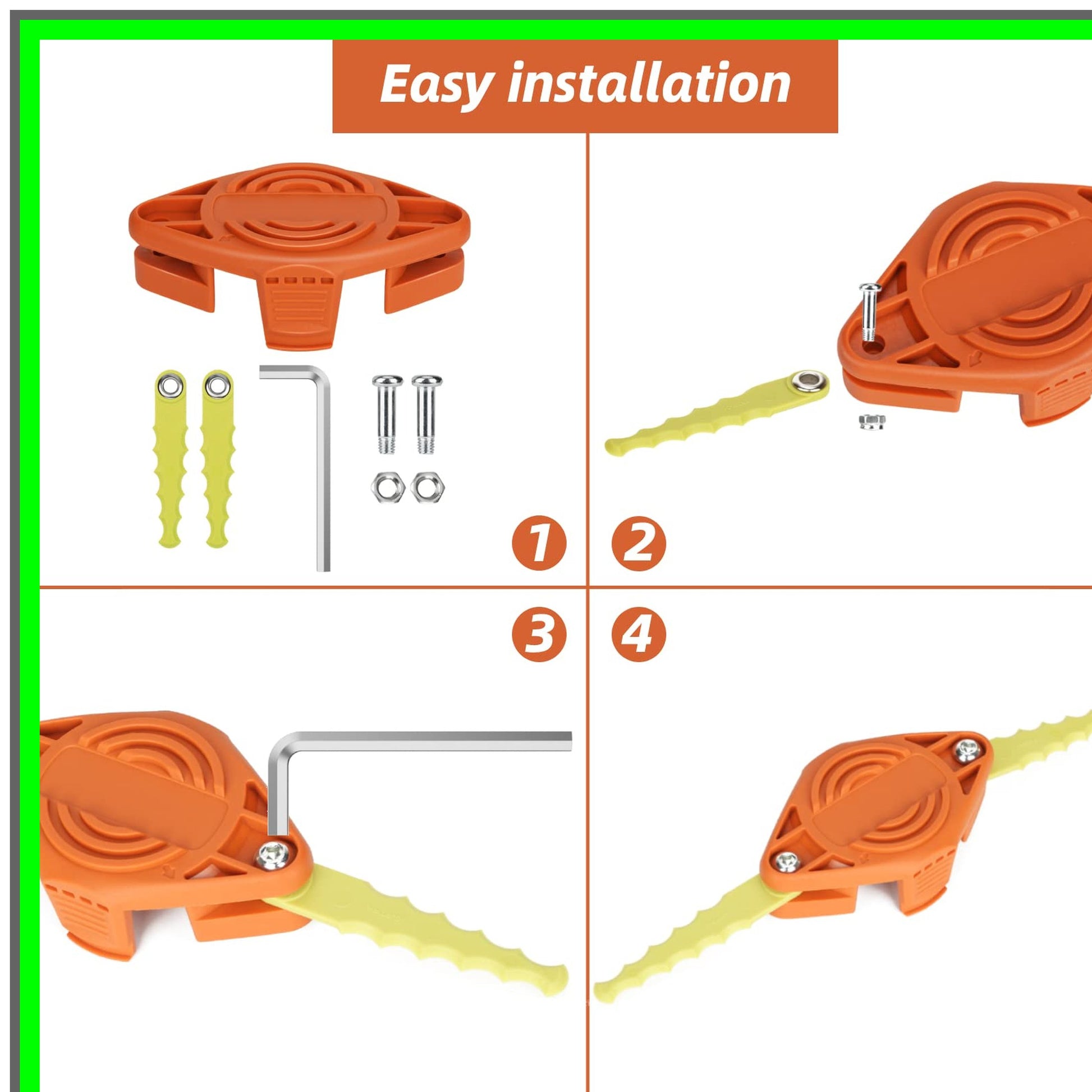 Transform your lawn care routine with our premium polycarbonate replacement blades, designed specifically for a range of popular string trimmers. This versatile 12-pack of blades is engineered to enhance your trimming experience, ensuring you tackle even the toughest weeds and grass with ease. Crafted from high-quality polycarbonate, these blades offer exceptional sharpness and durability, making them the perfect choice for homeowners and professionals alike. The innovative serrated edges are specifically designed to cut through thicker vegetation that standard strings struggle with, providing a clean and efficient cut every time. Installation is a breeze with our upgraded design. Say goodbye to complicated setups; our trimmer head features a fixed dual blade system that simplifies the process, allowing you to get back to your yard work in no time. The blades utilize advanced centrifugal force and aerodynamics, minimizing resistance for faster, smoother cutting performance.Safety and longevity are paramount, which is why our blades are built to withstand wear and tear, ensuring they remain effective throughout the season. Each package includes two polycarbonate replacement heads, 12 blades, six screws, and a handy wrench, giving you everything you need for a seamless replacement experience.Whether you're maintaining a pristine lawn or tackling overgrown areas, our replacement blades are your go-to solution for efficient and reliable trimming. Should you encounter any issues with installation or compatibility, our dedicated support team is ready to assist you within 24 hours. Elevate your lawn care game today with our top-tier replacement blades!