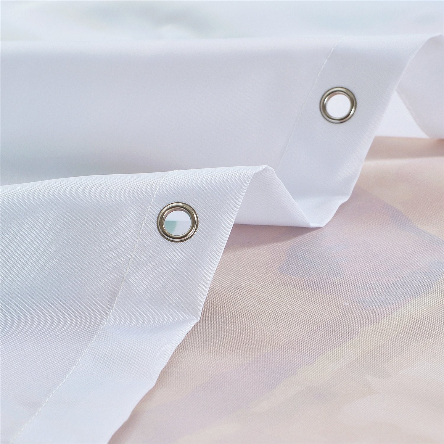 FEATURES: Baehroom Curtain Polyester fabric, Mat flannel PVC mesh bottom Shower Curtain size: 69W 70H inches Rug Set: Bath Mat 29 L 17 W), U-Shaped Tet Rug 17 L 14 W), Tet Lid Cover 17 L 13 W) Packing information: 1 Shower Curtain, 12 Strong Plastic Hooks, 1 Bathroom Mat, 1 Tet Lid Cover, 1 U Shape Rug. Easy to install and care Waterproof and durable Washing Tips:  nbsp; 1.Machine washable or hand wash 2.Wash cold by tle cycle 3.Do not bleach 4.Can be cleaned with a quick rinse or wipe after a shower WARM TIPS: 1.If there are some creases on shower curtain, please iron it tly. 2.The size may have a slight errors due to manual measurement. 3.Due to different monitors, the actual color may vary slightly.