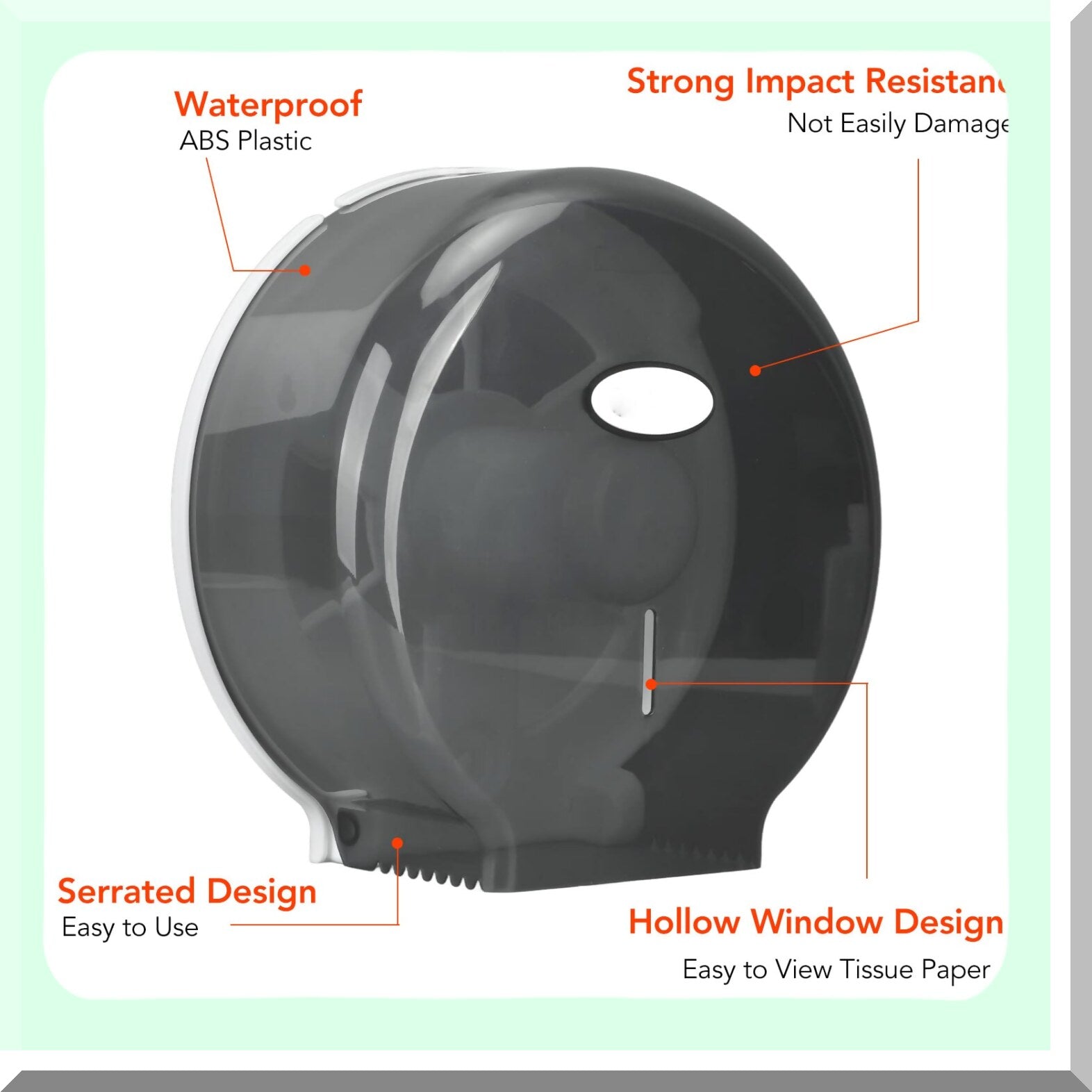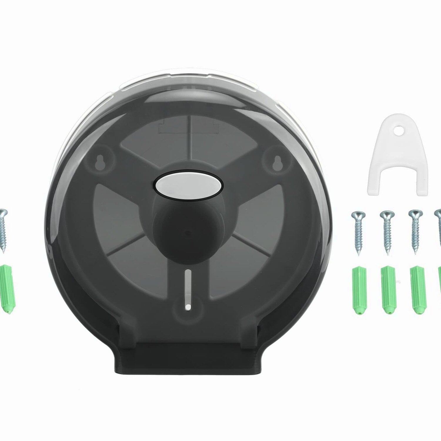 This tissue dispenser is made from durable ABS material, offering strong impact resistance and long-lasting use. Its compact size measures approximately 275x110mm (10.8x4.3 inches) and weighs around 482 grams (17 ounces). The design features a hollow window, allowing easy visibility of the remaining tissue and convenient refilling. Suitable for various settings such as hotels, gyms, restaurants, bedrooms, and bathrooms, it provides practical functionality in both commercial and home environments. The dispenser includes a fixing piece, four screws, and four expansion nails for secure wall mounting. Its sleek, modern appearance complements different decor styles, while the sturdy construction ensures resistance to scratches, discoloration, and aging. This single-roll jumbo tissue dispenser offers a reliable and stylish solution for managing tissue supplies efficiently.