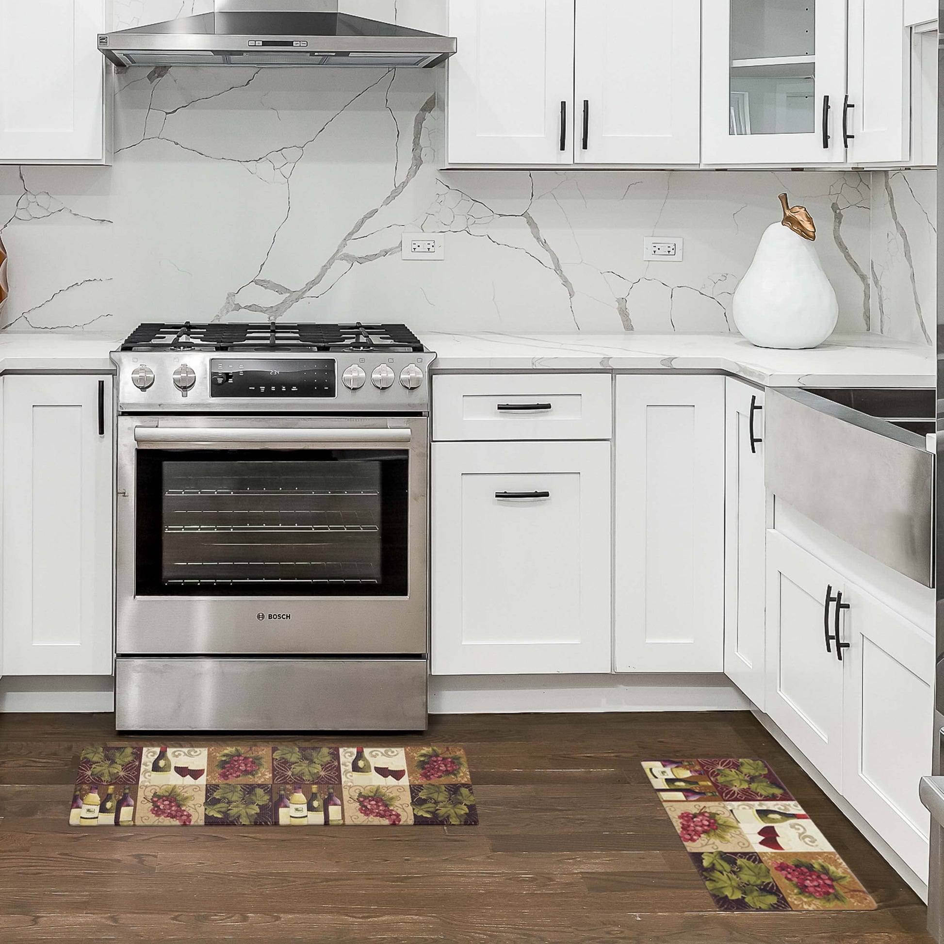 Wine Novelty Anti-Fatigue Kitchen Mat, Cooking & Standing Relief, Memory Foam & Skid-Resistant, Set of 2-17.5 x 48/17.5 x 28, Brown Red