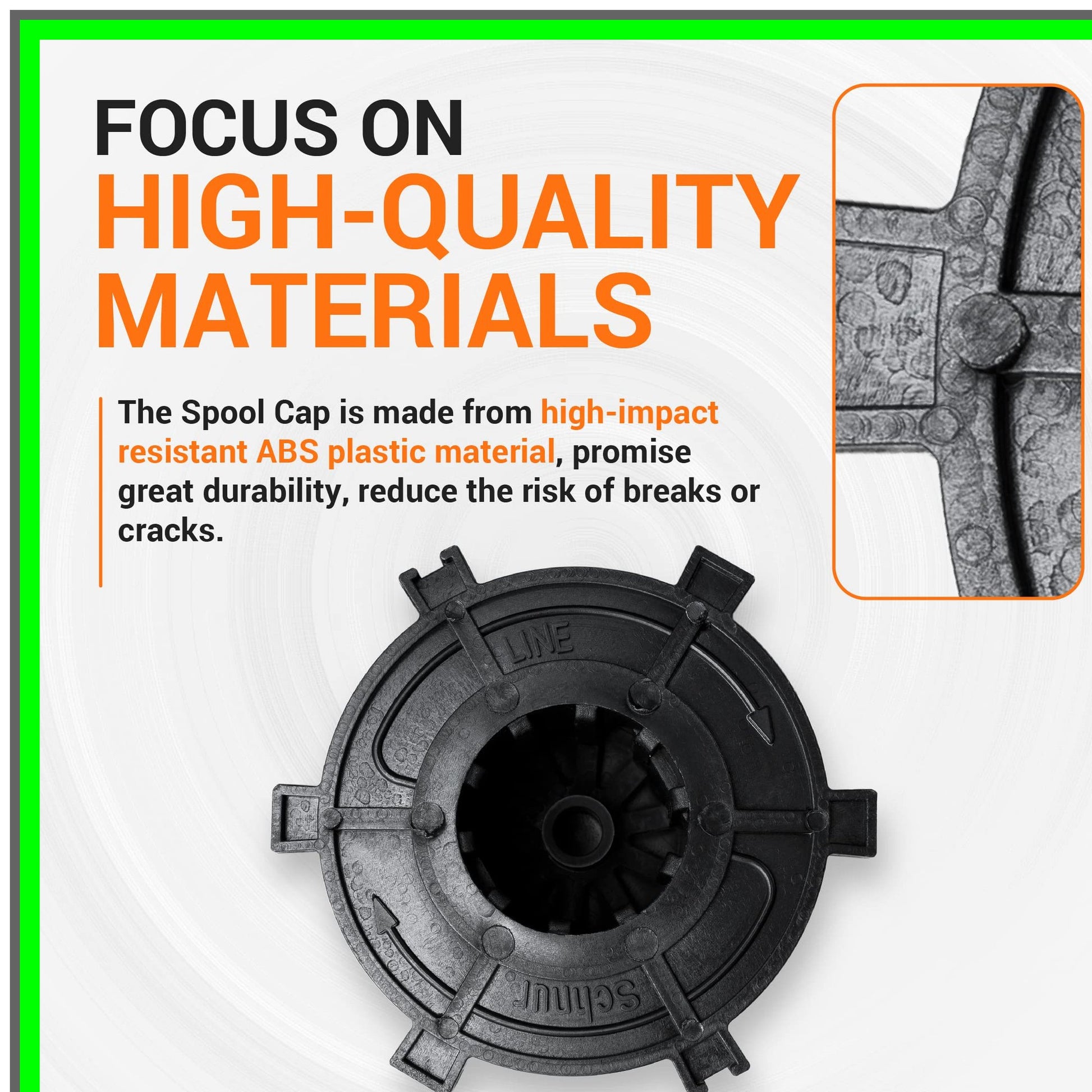 Transform your lawn care routine with our premium Spool Cap, designed to elevate your trimming experience and eliminate the frustration of uneven growth caused by outdated equipment. Say goodbye to the hassle of ineffective trimmers and broken spool caps, and embrace a solution that combines durability and efficiency.Crafted from high-impact ABS plastic, this Spool Cap is engineered for strength and longevity, ensuring it withstands the rigors of regular use without cracking or breaking. We understand that a reliable trimmer is essential for maintaining a pristine garden, and our Spool Cap delivers just that. Its robust construction minimizes the risk of damage, allowing you to focus on achieving a flawless finish.Experience seamless operation with our Spool Cap, which is designed to protect the spool and prevent debris from jamming the mechanism. This means uninterrupted trimming sessions and optimal performance every time you tackle your yard. Whether you're a seasoned gardener or a novice, our Spool Cap guarantees smooth functionality, making your lawn care tasks more enjoyable.Installation is a breeze! Our Spool Cap is user-friendly, allowing even those unfamiliar with trimmer maintenance to attach and load it effortlessly. Before making your purchase, we encourage you to review the product specifications to ensure compatibility with your trimmer model. Our dedicated team is here to assist you in selecting the perfect fit, saving you time and enhancing your gardening experience.Upgrade your trimming game with our reliable Spool Cap and enjoy a well-manicured lawn without the stress of equipment failure. Invest in quality, performance, and ease of use—your garden deserves it!