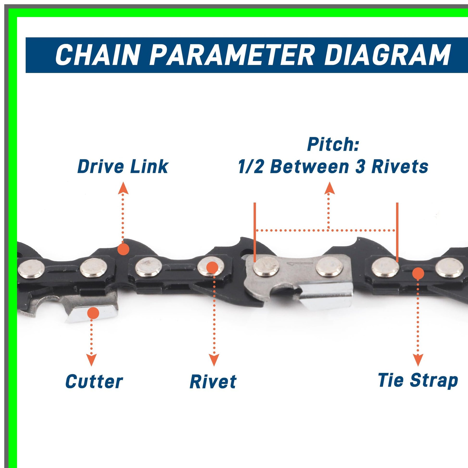 Durable 20 Inch Chainsaw Chain Set for Stihl, Blue Max, Oregon Compatibility