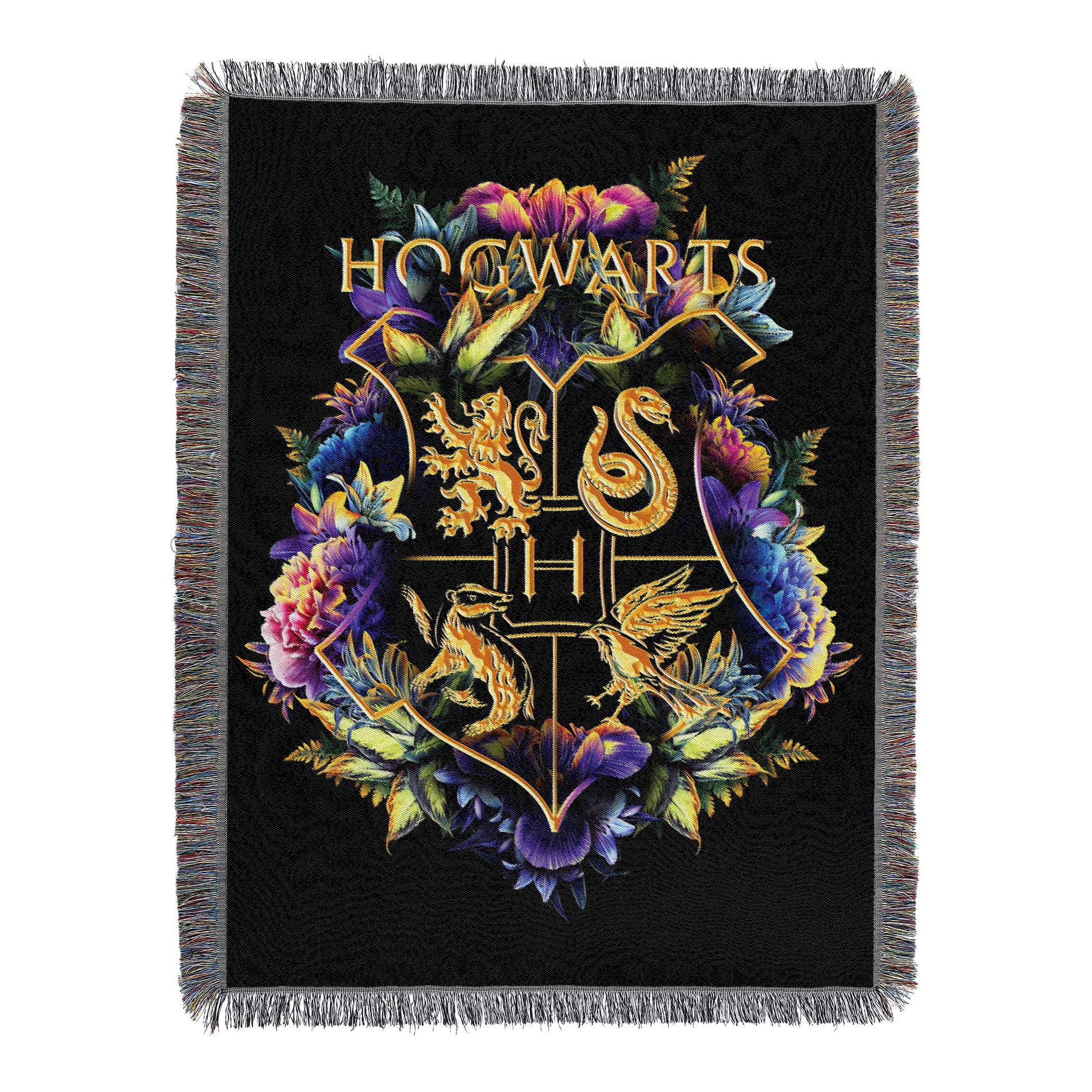 Dream about the Wizarding World with this J. K. Rowling's Harry Potter School Foliage" Woven Tapestry Throw Blanket by The Company.