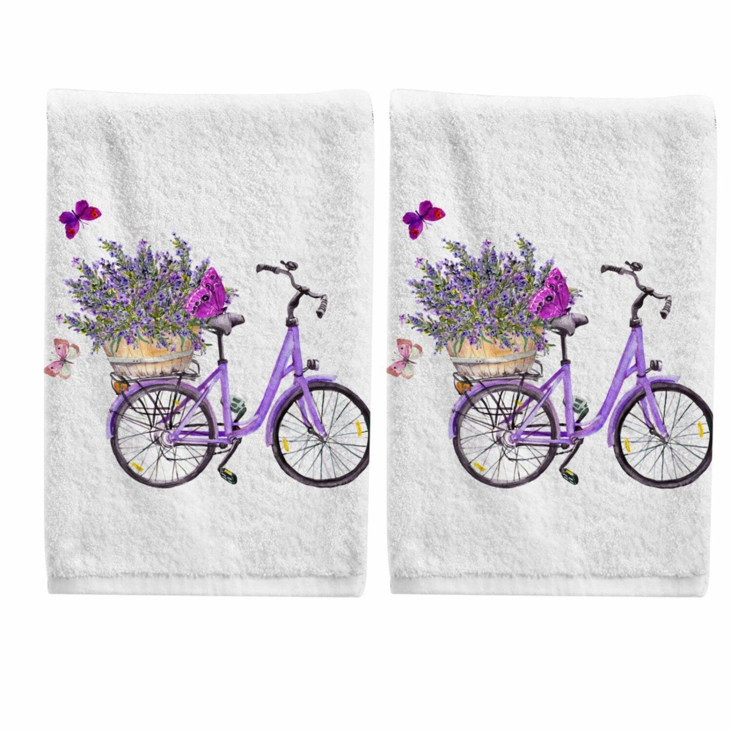 This set of lavender decorative bath towels includes two soft, 100% cotton towels measuring 16" x 30". Crafted from premium combed cotton, these towels are highly absorbent and quick-drying, providing a cozy and dry experience. The plush fabric offers a luxurious feel, while the reinforced edges prevent tearing and unraveling after multiple washes. The bright, elaborate printing resists fading, maintaining its vibrant appearance over time. Ideal for various uses, these towels serve as bath, beach, spa, or decorative towels, suitable for personal use, travel, or gifting. They are machine washable in cold water with mild detergent and can be tumble dried on low. These towels combine softness, durability, and elegance, making them a versatile addition to any bathroom, poolside, or spa setting. Their fluffy texture and absorbent quality ensure comfort and practicality for everyday use.