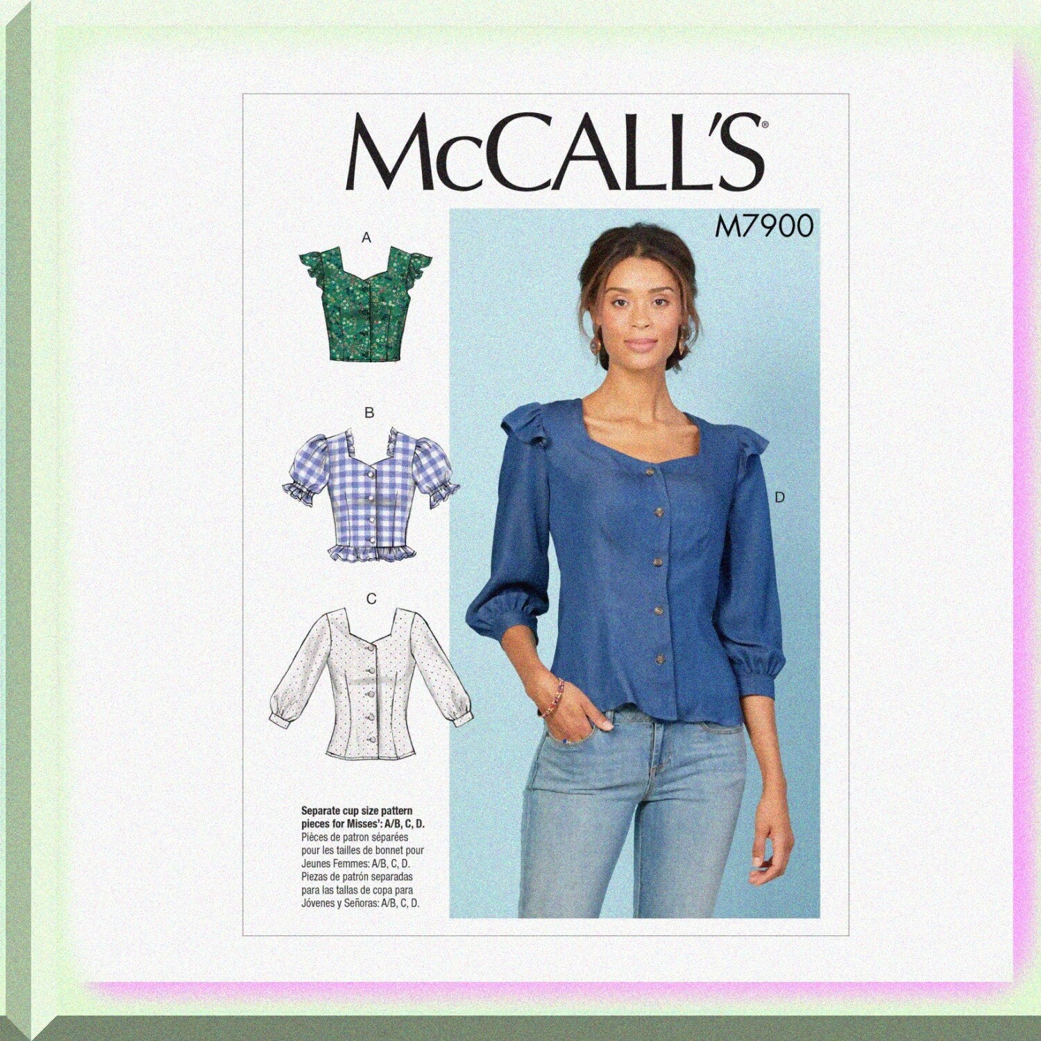 This sewing kit includes patterns for four stylish button-front blouses designed to fit women's sizes 6 through 14. The patterns feature neck and front facings and can be made with A/B, C, and D cup sizes. Each blouse pattern provides detailed sewing templates, fabric recommendations, and comprehensive instructions available in English, Spanish, and French. The kit includes pieces and sizing guides to help create flattering, tailored garments. Specific design details include a blouse with bias tape finished armholes, and another with elasticized sleeves, with bias tape for casing included. The patterns are printed in the USA and are suitable for various fabric choices, allowing for customization and a professional finish. This kit offers all the necessary components to craft four distinct blouses, making it ideal for sewists looking to expand their wardrobe with versatile, well-fitting tops.