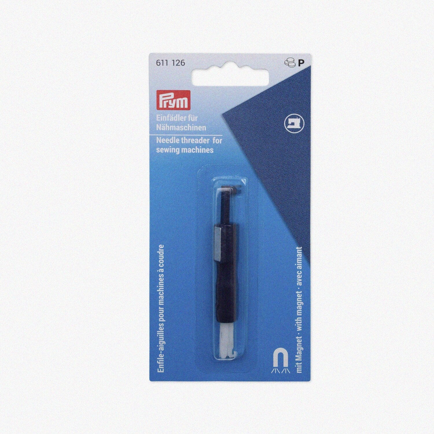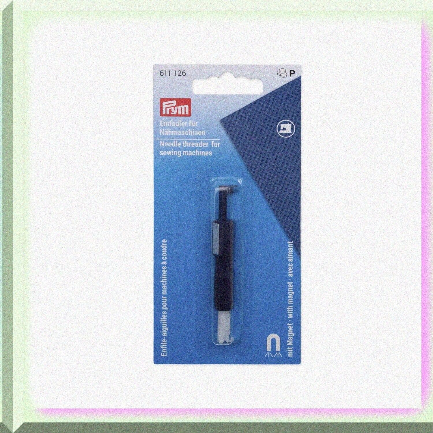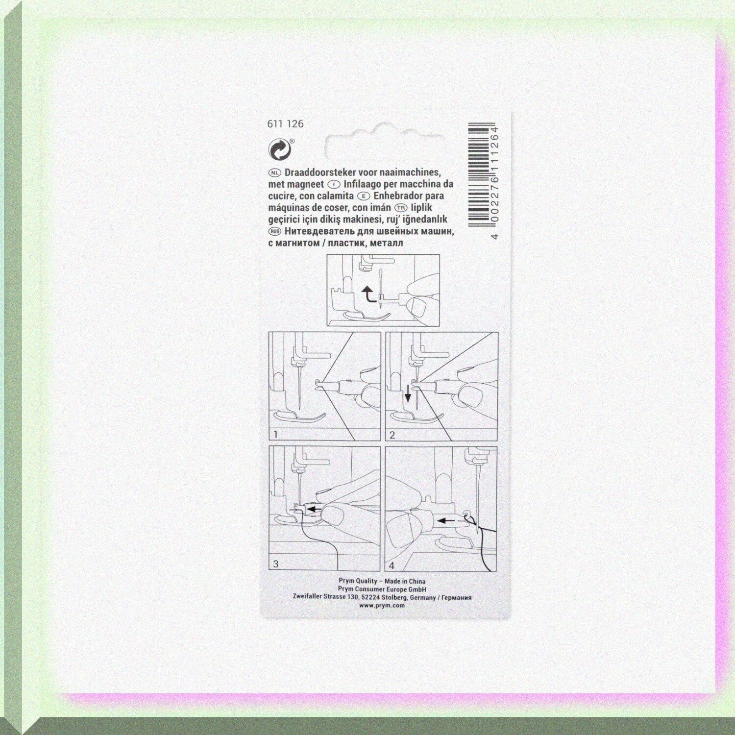 This versatile sewing machine threading aid features three essential functions: a needle holder, a needle threader, and a practical magnet. The needle threader employs an ingenious mechanism that simplifies the challenging task of threading the needle. A fine metal pin acts as a spring, guiding the thread easily through the needle's eye in just a few simple steps. Hooks on the front and sides of the thread guide ensure the thread is drawn completely through. Additionally, the needle threader can be used to insert the needle into the sewing machine with the help of the needle holder. Position the needle with the point downward and the piston upward in the holder for easy insertion. The integrated magnet is useful for picking up needles from the table. Designed in a dark violet color, this robust plastic tool combines practicality with durability, making sewing tasks more manageable and efficient.