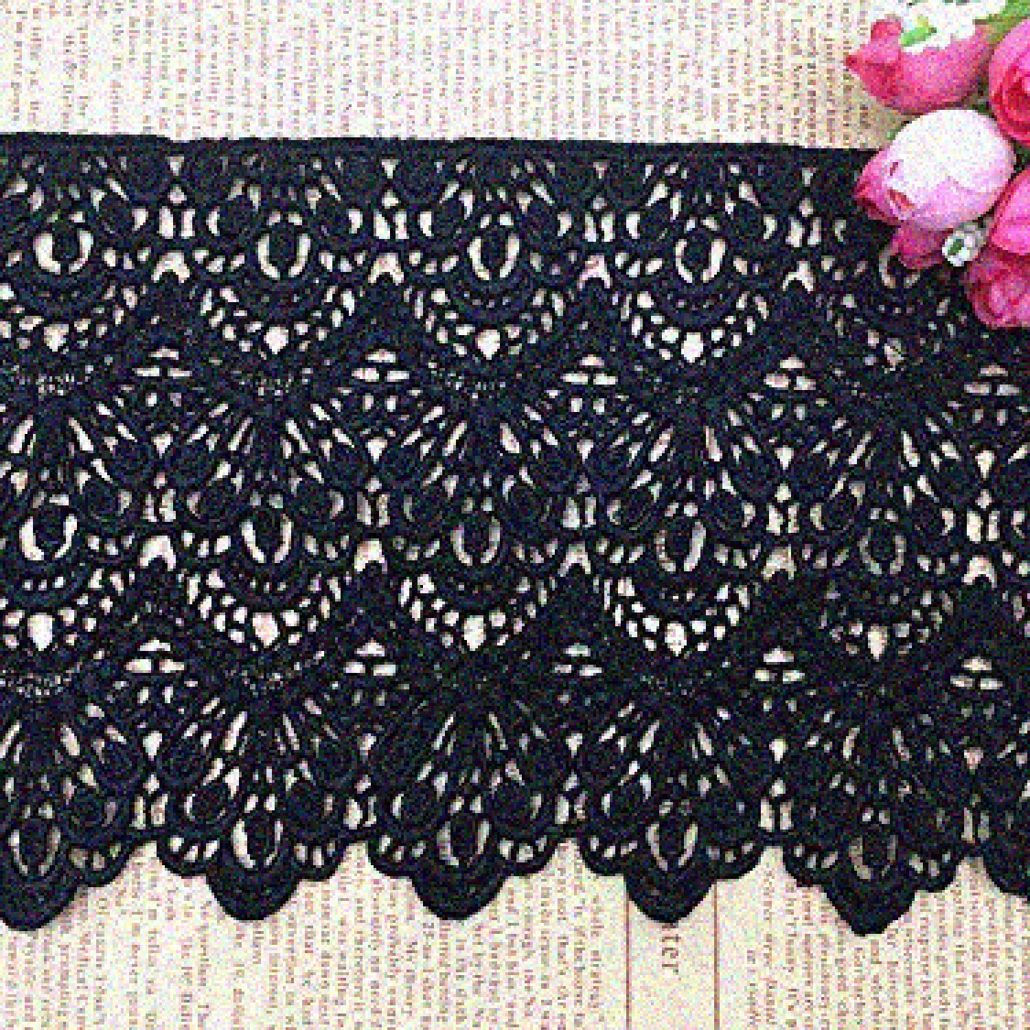 This 14cm wide embroidered lace trim measures approximately 4 yards in length. Crafted from 100% polyester, it offers a soft hand feel and features a beautiful vintage-style long pattern design. The trim is available in a variety of colors including white, black, pink, light green, light blue, navy blue, wine red, blackish green, cream, camel, red, and gray. Its fine workmanship gives it a delicate and elegant appearance, making it suitable for decorating home textiles, sewing clothing, or embellishing party dresses. It can also be used for creating dolls, hair accessories, hats, and bags. The lace trim's intricate embroidery adds a touch of sophistication to any project. Perfect for adding a decorative finish to curtains, tablecloths, bridal accessories, or DIY crafts, this versatile trim is a charming addition to any sewing or decorating collection. Package includes one 4-yard embroidered lace trim.