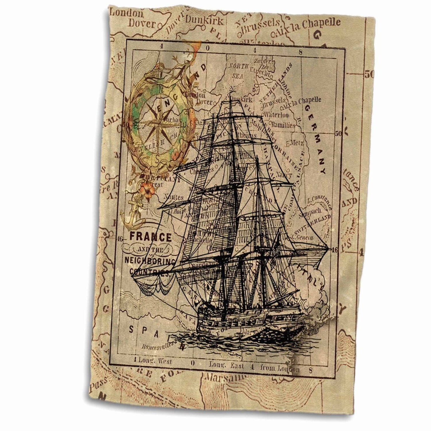 This 15" x 22" hand towel features a striking image of a black ghost ship on a vintage European map design. Ideal for use in the kitchen, bathroom, or gym, it is perfect for drying dishes, hands, and faces. Its versatile size makes it suitable for various settings and easy to carry in any sports bag. The towel is designed to regain its fullness after the first wash, ensuring long-lasting softness and absorbency. Crafted for practicality and style, it adds a unique touch to everyday routines while providing reliable performance. Whether used for quick drying or as a decorative accessory, this towel combines functionality with an eye-catching design. Its durable material ensures it remains a useful and attractive addition to your home or gym essentials.