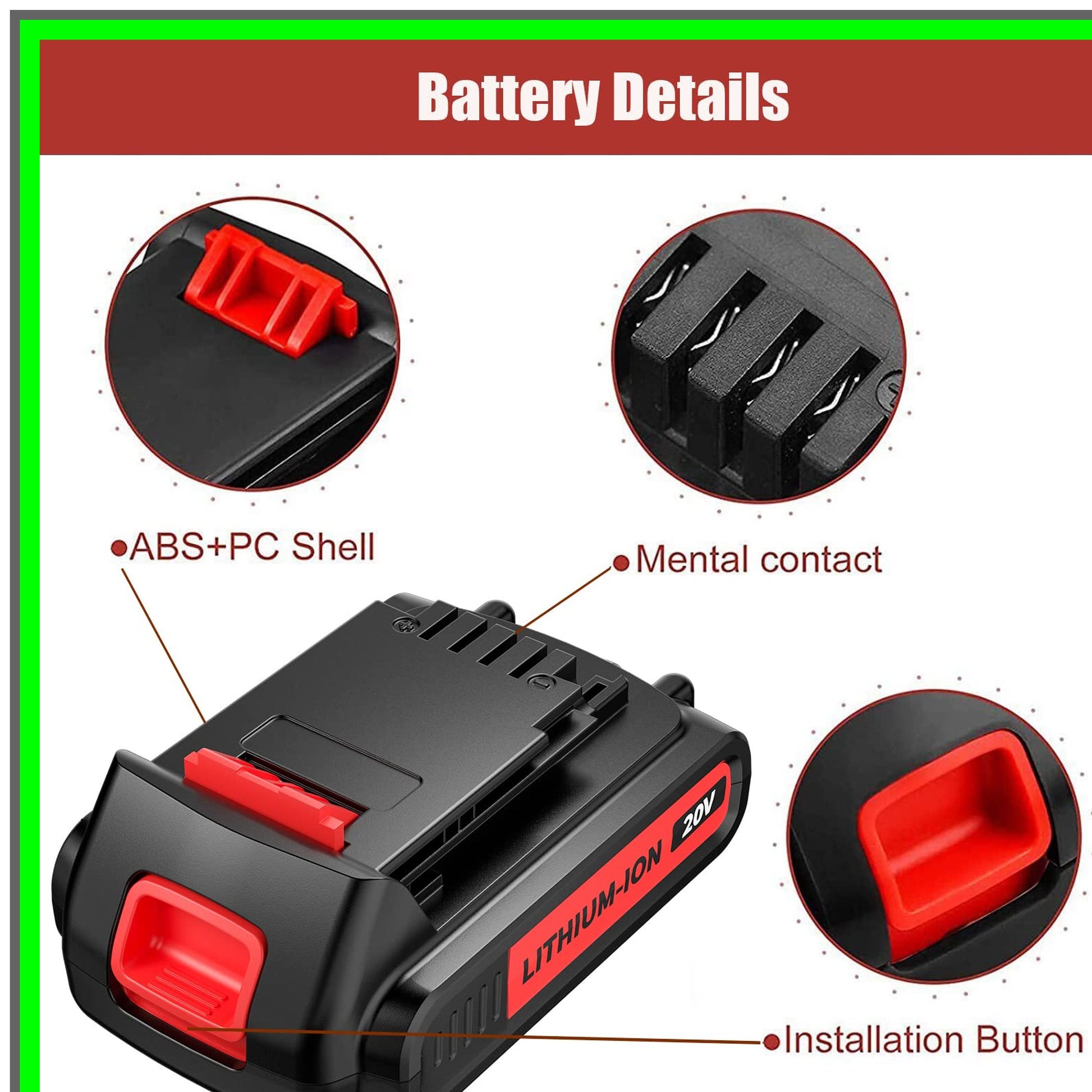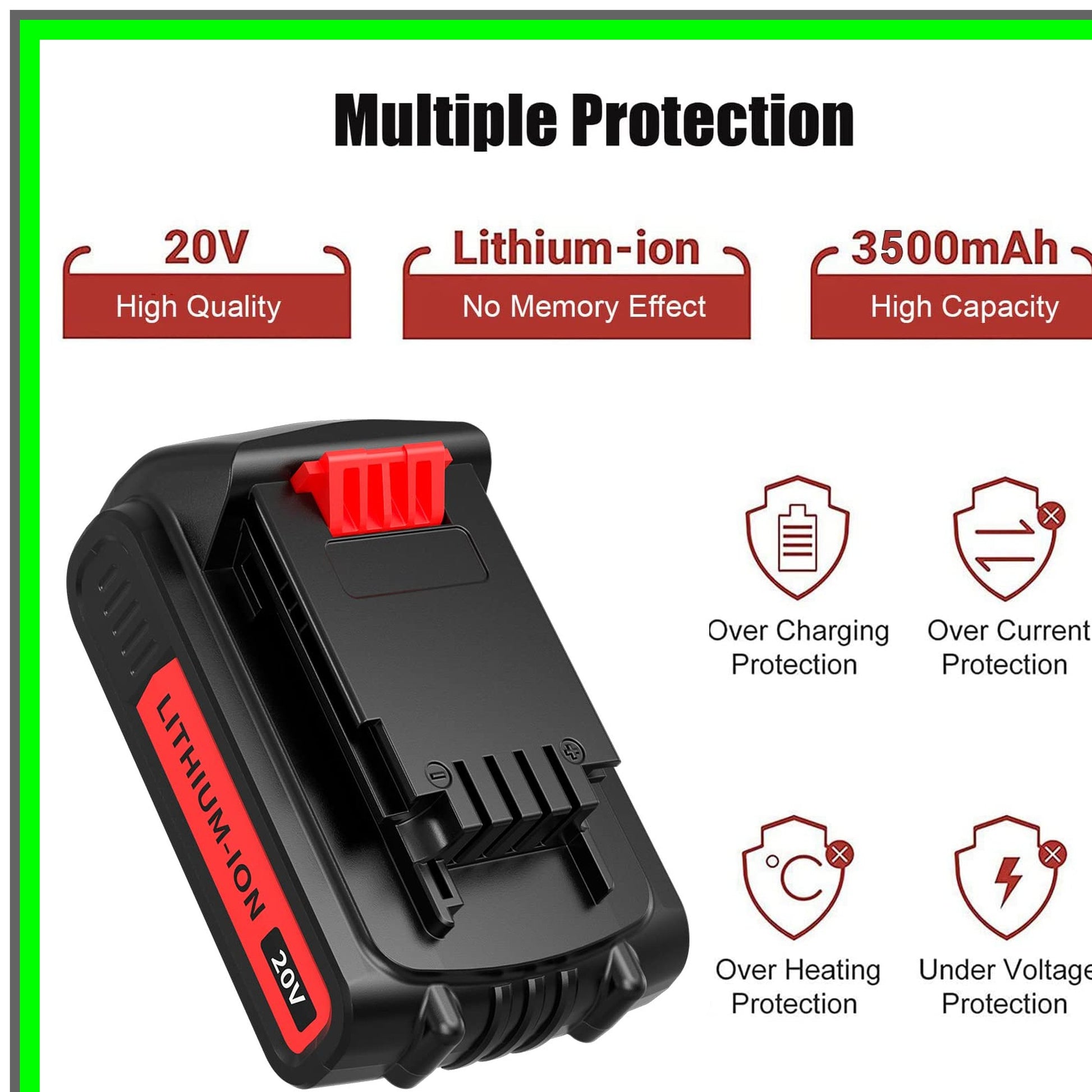 Elevate your power tool performance with this high-capacity 2-pack replacement battery, designed specifically for a range of popular cordless tools. Each battery boasts an impressive 3500mAh capacity, ensuring longer runtimes and enhanced efficiency for all your DIY projects. Engineered with advanced lithium-ion technology, these batteries deliver a reliable 20V output, making them the perfect companion for your Black and Decker tools.Say goodbye to frequent recharging! With the ability to hold a charge for up to 500 days, you can trust that your tools will be ready when you are. The user-friendly design allows for easy installation and removal, so you can get back to work without any hassle. Whether you're tackling yard work or home improvement tasks, these batteries are compatible with a wide array of models, including LB20, LBXR20, LST220, and many more.To maximize battery life and performance, follow our simple care tips: fully charge before use, exercise the battery every few weeks, and store it in a cool, dry place if not in use for an extended period. Always remember to detach the battery when making adjustments or cleaning your tools for added safety.Customer satisfaction is our top priority, and we are committed to providing exceptional service. If you have any questions or need assistance, donβt hesitate to reach out. Upgrade your power tool experience today with this reliable and efficient battery pack, and enjoy the freedom of cordless convenience!