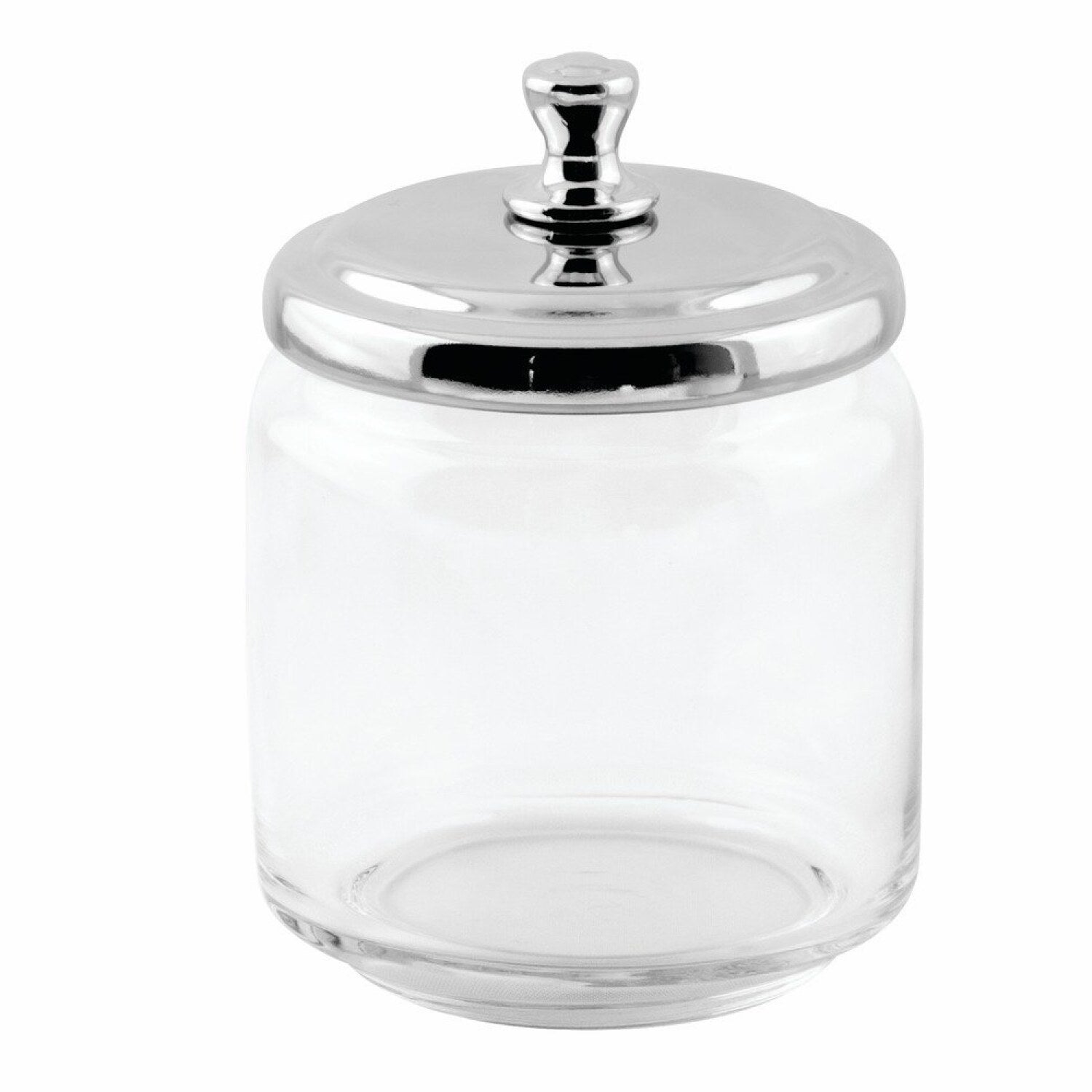 This small apothecary jar features a clear glass base with a polished steel lid, offering a traditional design that complements various styles. Its lidded canister is ideal for storing cotton balls, swabs, bath salts, and other bathroom accessories, helping to keep your space organized. Perfect for small spaces, this versatile container combines functionality with a clean aesthetic. The durable glass construction ensures longevity, while the steel lid provides a secure seal. Its simple yet elegant design makes it suitable for a variety of bathroom decors. Whether used for everyday essentials or decorative purposes, this jar adds a touch of classic charm to your bathroom setup. Compact and practical, it is an excellent choice for maintaining a tidy and stylish bathroom environment.