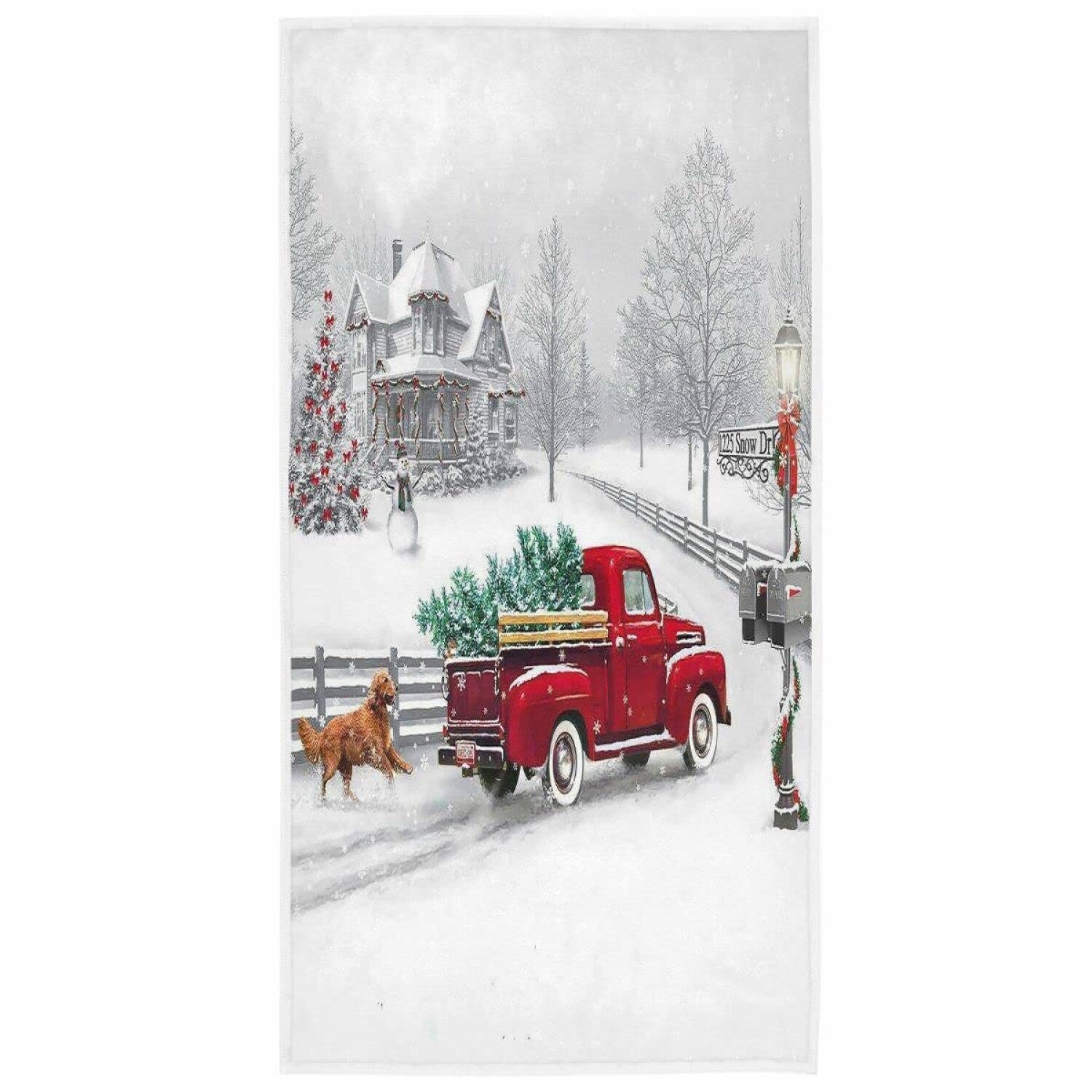 This set of fingertip towels measures 16x30 inches and features charming winter-themed designs, including snowflakes, snowmen, and festive holiday motifs. Crafted from highly absorbent material, these towels are ideal for use in the kitchen, bathroom, or as guest towels. The decorative patterns showcase a red truck, a golden retriever dog, and seasonal elements, adding a cozy touch to your space. Their lightweight and soft texture make them perfect for quick hand drying or decorative purposes during the holiday season. The towels are easy to care for, durable, and designed to complement your winter decor. Whether for everyday use or special holiday occasions, these towels provide both functionality and festive charm. Enhance your home with these versatile towels that combine practicality with seasonal style, making them a delightful addition to your holiday decorations or daily routine.