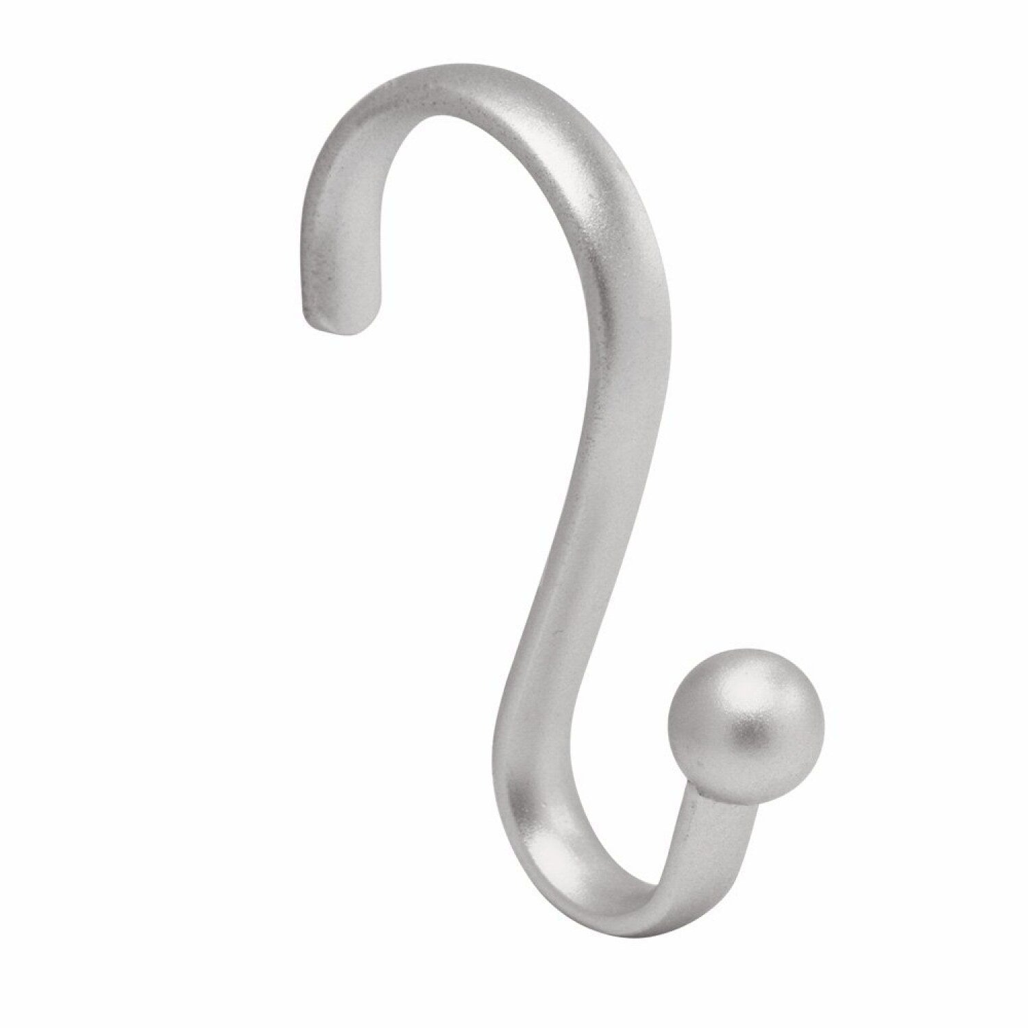 Add a touch of style and function to your bathroom with these decorative steel shower curtain hooks. This set of twelve s-hooks is designed to securely hold shower curtains and liners in place, with a smooth surface that glides effortlessly over the rod during use. The curved s-hook shape easily hangs over most standard-sized shower rods and is recommended for use with button-holed curtains and liners. Attaching is simple—just connect to the curtain and liner, then hang over the shower rod for quick setup. Made from durable, rust-resistant steel with a sleek silver finish, these hooks are built to withstand daily use and complement various bathroom decor styles. Each hook measures approximately 2.91" x 0.5" x 2.11", making them suitable for a variety of shower curtain, liner, and rod sizes. Enhance your shower experience with these reliable and stylish hooks.