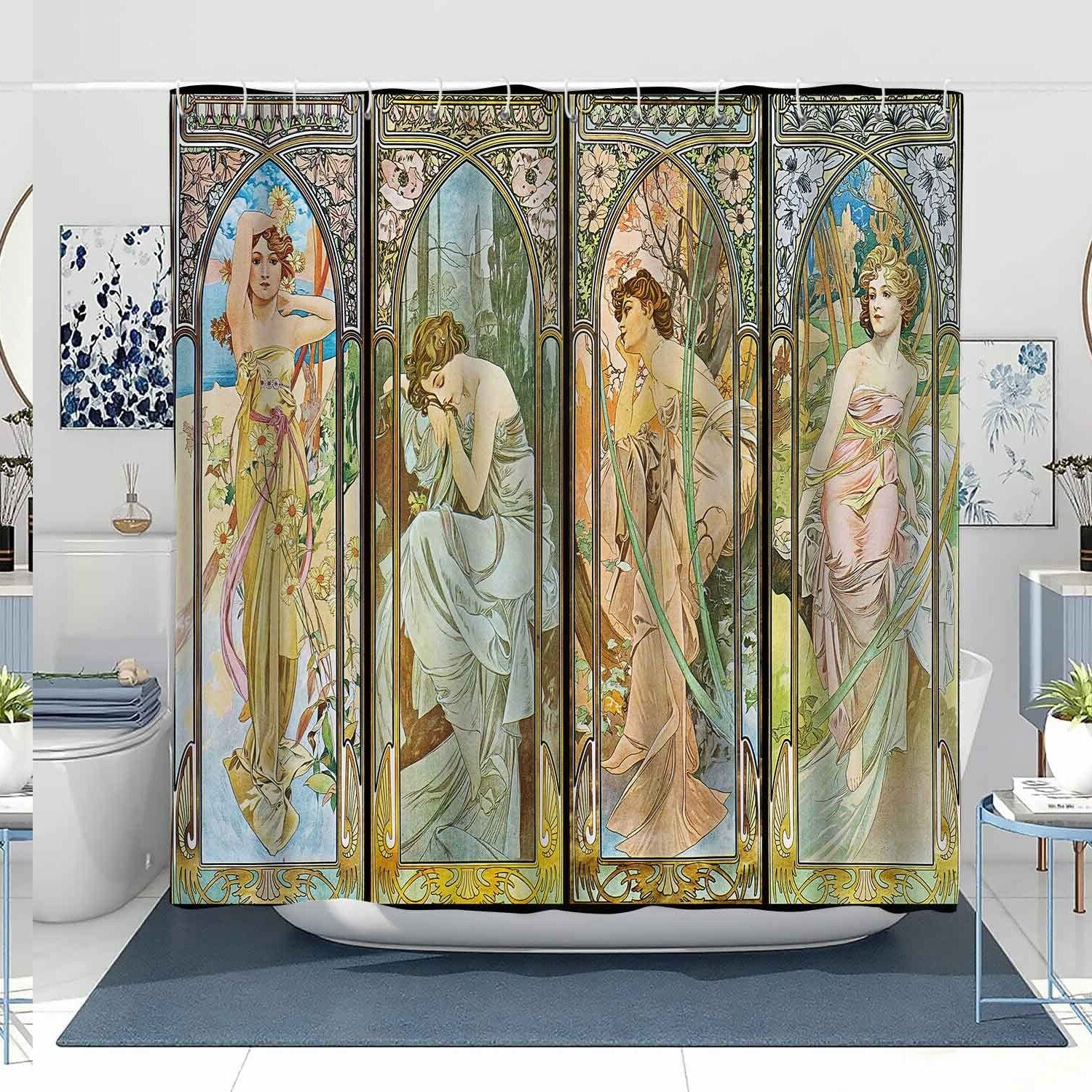 The Art Nouveau Lady Shower Curtain features a stunning design inspired by the "Art Times of The Day" series, showcasing scenes of morning awakening, daybreak, evening reverie, and night’s rest. Crafted from upgraded polyester fabric, this 72" x 78" curtain offers durability, vibrant HD digital printing, and crisp, fade-resistant colors that brighten any bathroom. The lightweight material is easy to hang and care for, with rust-resistant metal grommets for secure attachment. A weighted hem ensures the curtain hangs evenly, maintaining a neat appearance. Included are 12 free white C-type plastic hooks for effortless setup. The curtain is environmentally friendly, PVC-free, odorless, and safe for your family’s health. It can be hand washed or gently machine washed in cold water and hung to dry, with no need for ironing at high temperatures. Wrinkles from packaging will smooth out naturally when hung in a humid bathroom environment.