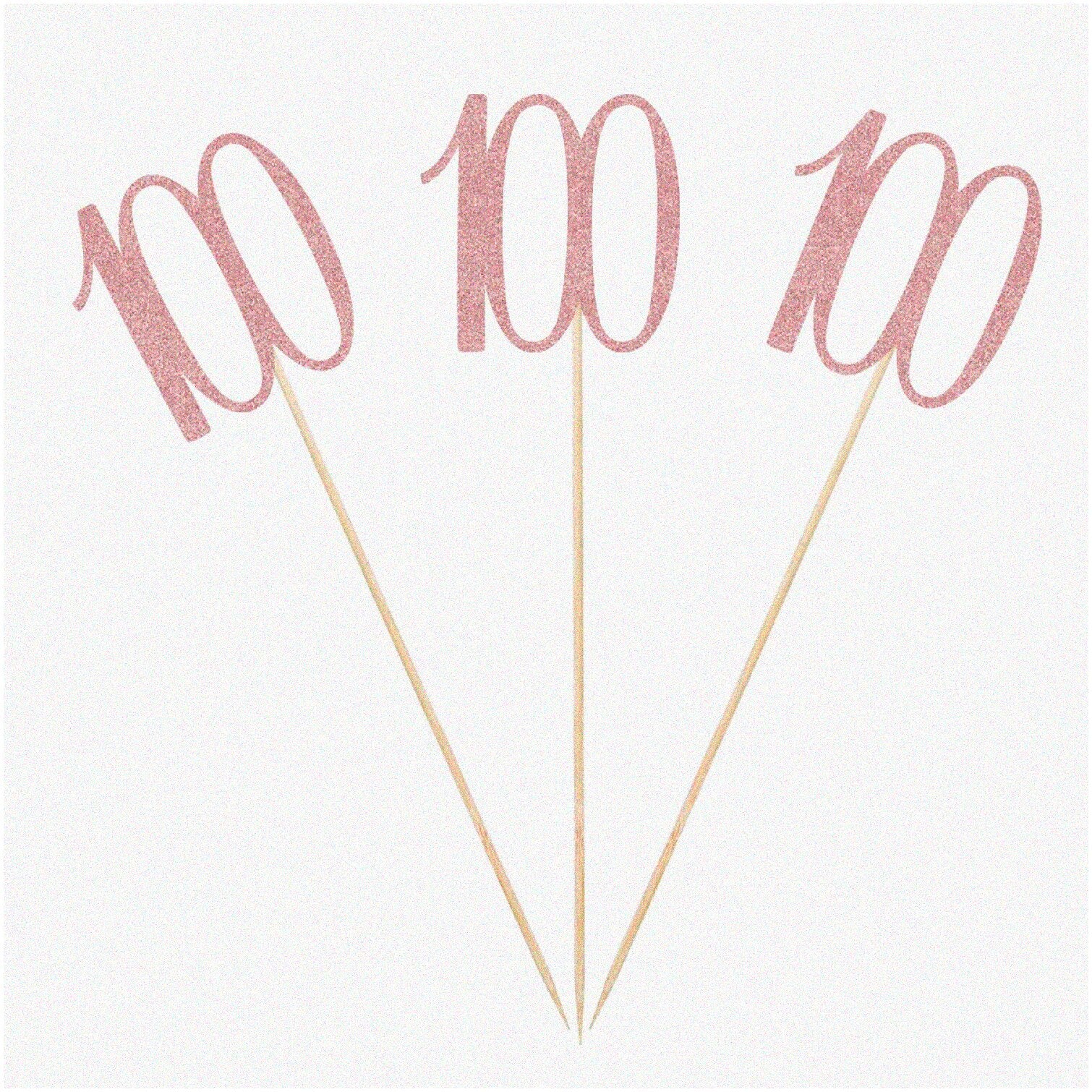 Celebrate a special milestone with this set of 12 sparkling Rose Gold 100th Glitter Birthday Centerpiece Sticks. Each pack includes 12 double-sided glitter number cut-outs featuring the number 100, along with 12 sticks and 14 additional pieces for easy assembly. These eye-catching decorations add a touch of glamour to any anniversary or milestone celebration. The glitter finish enhances their visual appeal, making them stand out on tabletops and creating a festive atmosphere. Designed for versatility, these centerpiece sticks are suitable for various event settings and can be used to decorate tables, dessert displays, or photo areas. Their durable construction ensures they will hold up throughout the celebration, providing a stylish and memorable accent to your party decor. Elevate your event with these elegant and shimmering decorations that are sure to impress your guests. Features include 12 double-sided glitter number cut-outs, 12 sticks, and 14 additional pieces.
