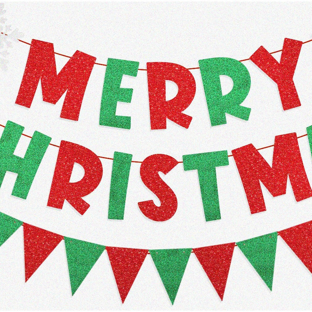Transform your celebration into a festive winter scene with this dazzling decoration set. The package includes a red and green glittery "MERRY" banner, accented with two white glitter snowflakes, and a matching red and green glitter pennant banner. Crafted from eco-friendly glitter paper, these banners are charming and durable. The "MERRY" banner stands at 6 inches tall, serving as a striking centerpiece for your decor. Perfect for holiday parties, winter wonderland themes, or any festive gathering, these banners add sparkle and cheer to any space. They help create a lively, wintery atmosphere that will delight guests and elevate your event. Designed to be eye-catching and long-lasting, this decoration set is ideal for creating memorable celebrations. Bring a joyful, festive spirit to your home, office, or party space with this beautiful, high-quality decoration package. The set includes a red and green glittery "MERRY" banner with two white glitter snowflakes and a matching red and green glitter pennant banner, perfect for enhancing your winter party ambiance.