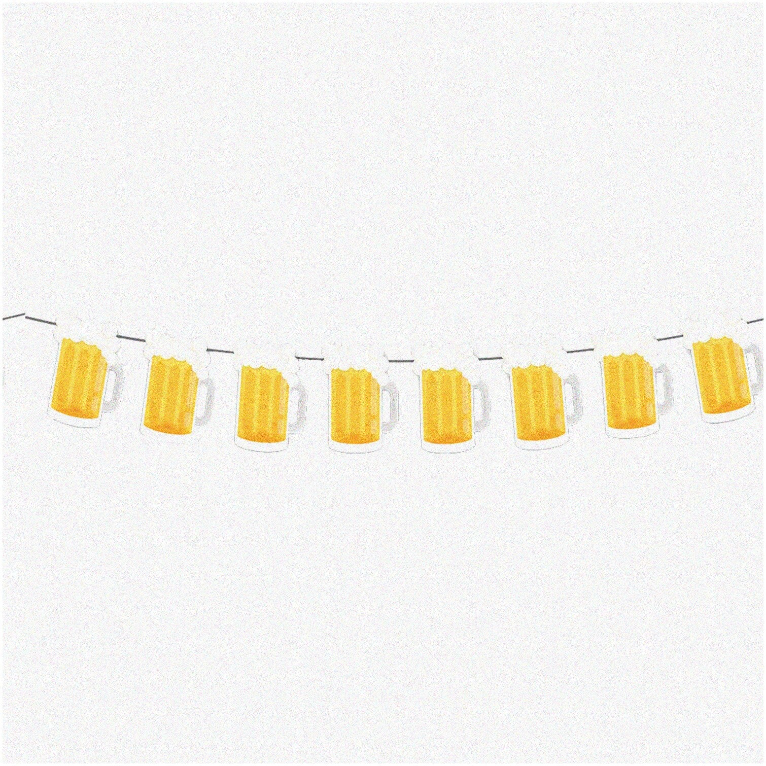 Celebrate your special occasion with this festive beer-themed banner kit. Perfect for birthdays, weddings, anniversaries, or any memorable event, it features a colorful pennant banner adorned with beer mug shapes. The package includes one banner with eight beer mug designs and a ribbon for easy hanging. These vibrant decorations are ideal for decorating walls, windows, garden areas, doors, or dessert tables, creating a lively and joyful atmosphere. They help set the scene for fun-filled moments and memorable photos with loved ones. Whether you're hosting a casual gathering or a more formal celebration, this kit adds a touch of festivity and cheer. Easy to assemble and versatile in use, it ensures your event is unforgettable. Bring a spirited vibe to your celebration with these charming beer-themed decorations that will delight guests and enhance your party ambiance. Features: Package includes 1 banner with 8 beer mug shapes and 1 ribbon.