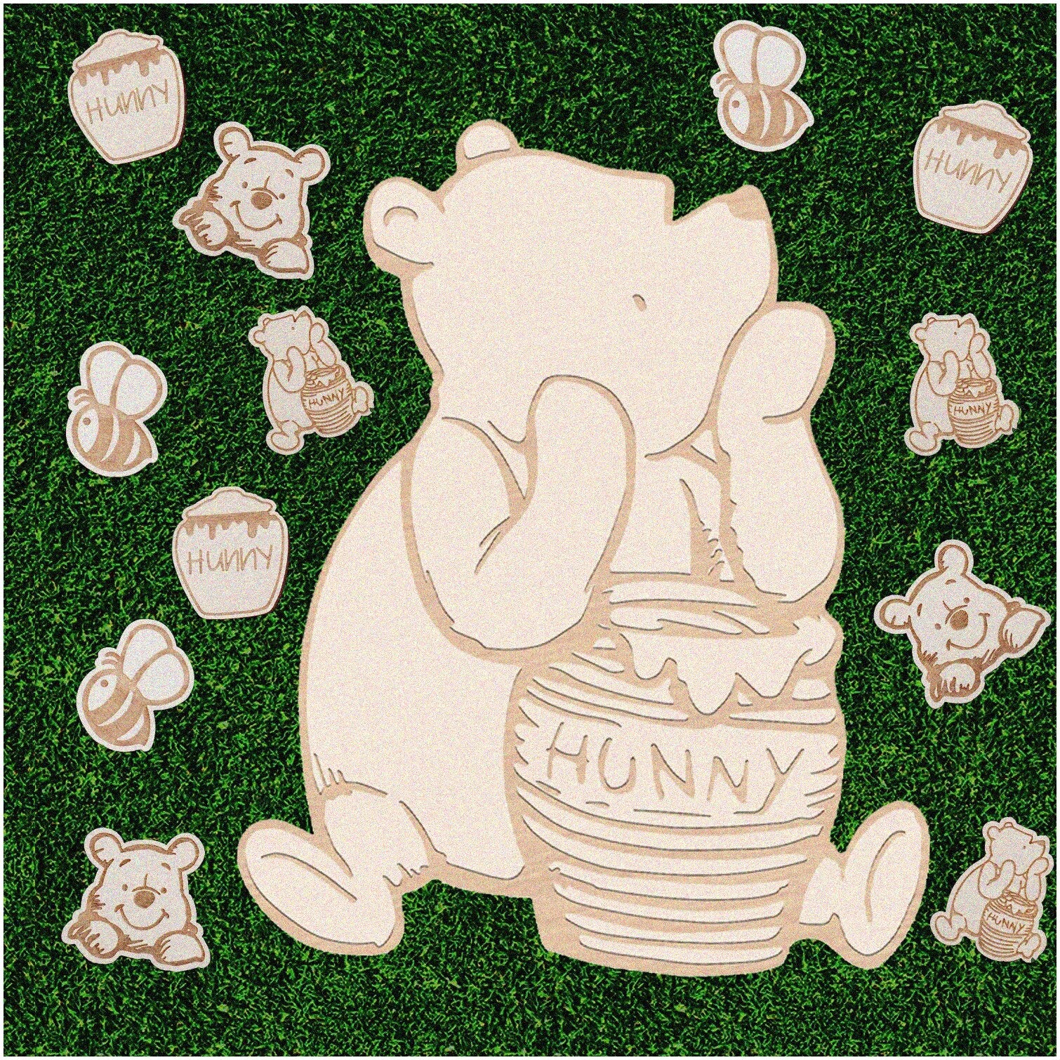 Create charming table centerpieces and room decor with this 23-piece set. It includes one large 11x8 inch wooden bear cutout supported by two small wooden supports for easy display. The set also features 20 bear-themed confetti pieces, divided into four enchanting designs, perfect for adding whimsical touches to any celebration. The wooden cutout serves as a sturdy and attractive focal point, while the confetti adds fun and charm to tables and party spaces. This versatile set is easy to assemble and enhances the festive atmosphere with adorable bear motifs. Whether used as a centerpiece or scattered around the room, these decorations bring a whimsical and joyful touch to any event. The package includes 23 pieces: one large wooden bear cutout with supports and 20 bear-themed confetti pieces in four different designs.