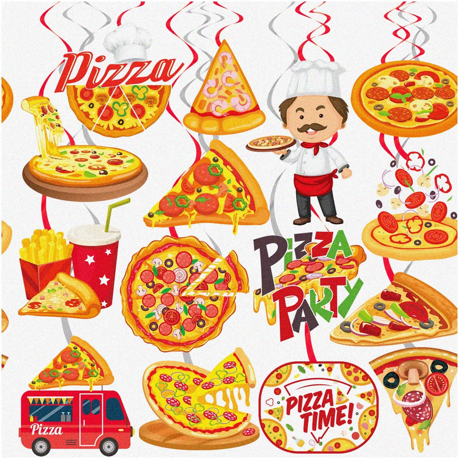 Add a fun and festive touch to your celebration with this set of 20 pizza-themed hanging swirls. Featuring 18 unique designs, including images of pizzas, French fries, cola, a pizza truck, and a chef, these decorations capture the essence of a pizza party. The package also includes 2 pattern-free swirls for variety. Perfect for birthdays, baby showers, family gatherings, or any event celebrating a love for pizza and fast food, these decorations are easy to hang and instantly enhance the party atmosphere. Bright and colorful, they bring a lively and delicious vibe to your event space. Whether you're planning a themed bash or a casual get-together, these swirls are a simple way to add excitement and visual interest. Create a memorable celebration with these delightful pizza party decorations that are sure to delight guests of all ages.