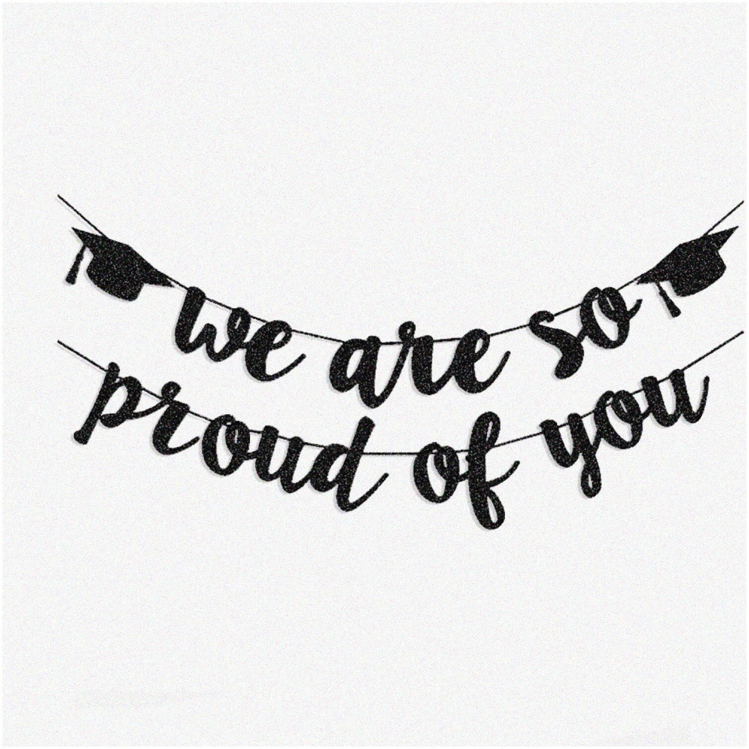 Celebrate the Class of 2023 with this stunning black glittery "We are So Proud of You" graduation banner. The banner comes in two parts, each approximately 9.84 feet long, and is pre-assembled for easy setup. Crafted from high-quality black glitter material, it adds a touch of elegance and excitement to any celebration. The letters measure about 7.87" x 6.7" and can be hung from branches, ceilings, or walls, or used as a photo backdrop. The glittery design enhances the festive atmosphere, making it ideal for graduation parties, school events, or home celebrations. Its durable construction ensures it withstands the energy of the event, providing a reliable decoration. This versatile banner is suitable for all types of graduations, from kindergarten to college, and can also be used for other milestones or achievements. Make your celebration memorable with this eye-catching decoration.