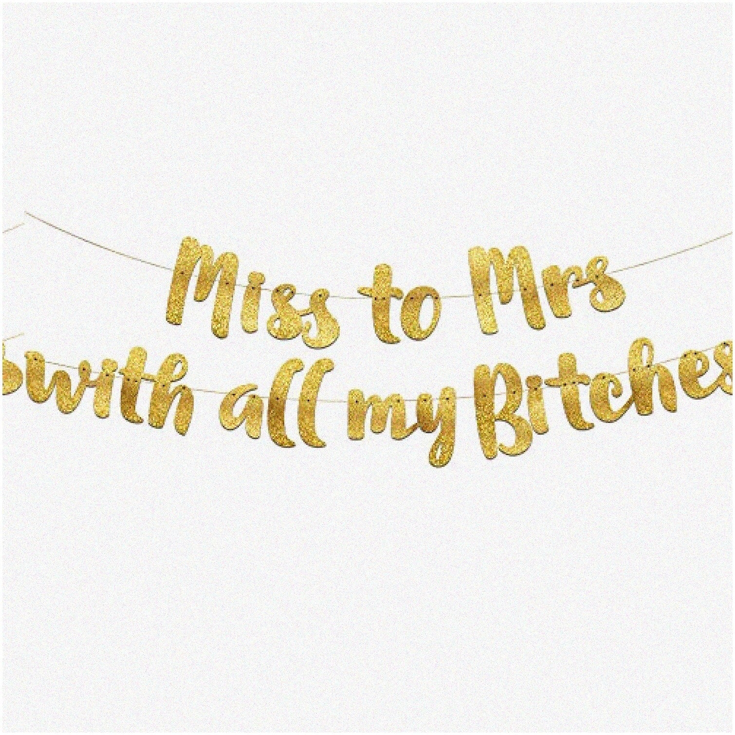 Transform your celebration with a sparkling gold glitter banner that reads "Miss to Mrs." This pre-strung banner requires no assembly, making setup quick and easy. Crafted from high-quality materials, it offers durability and a touch of elegance to your event decor. Perfect for both bachelorette parties and bridal showers, this versatile banner adds a glamorous flair to any celebration. Its stylish design enhances your decorations and creates a memorable atmosphere for the bride-to-be. Whether you're planning a lively party or an intimate shower, this banner is an ideal choice to elevate your festivities. Its eye-catching sparkle and durable construction ensure it will be a highlight of your event, making your special day even more unforgettable. Celebrate in style with this beautiful, long-lasting decoration that complements any party theme.