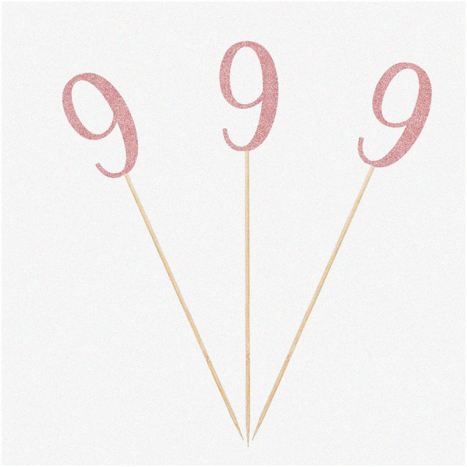 Celebrate a special 9th birthday or anniversary with these sparkling rose gold glitter centerpiece sticks. This set includes 12 double-sided glitter number cut-outs, each featuring the number 9, along with 12 sticks for easy placement. The glitter finish adds a touch of elegance and glamour to any table setting, creating a festive atmosphere. Designed to enhance your party decor, these eye-catching toppers are perfect for highlighting milestone moments. The set also includes 14 additional pieces to ensure a complete and coordinated look. Easy to assemble, these dazzling decorations are an ideal addition to your celebration, making your event unforgettable. The shimmering centerpiece sticks bring a festive and memorable touch to any occasion, helping to create a visually striking display that captures the spirit of the celebration.