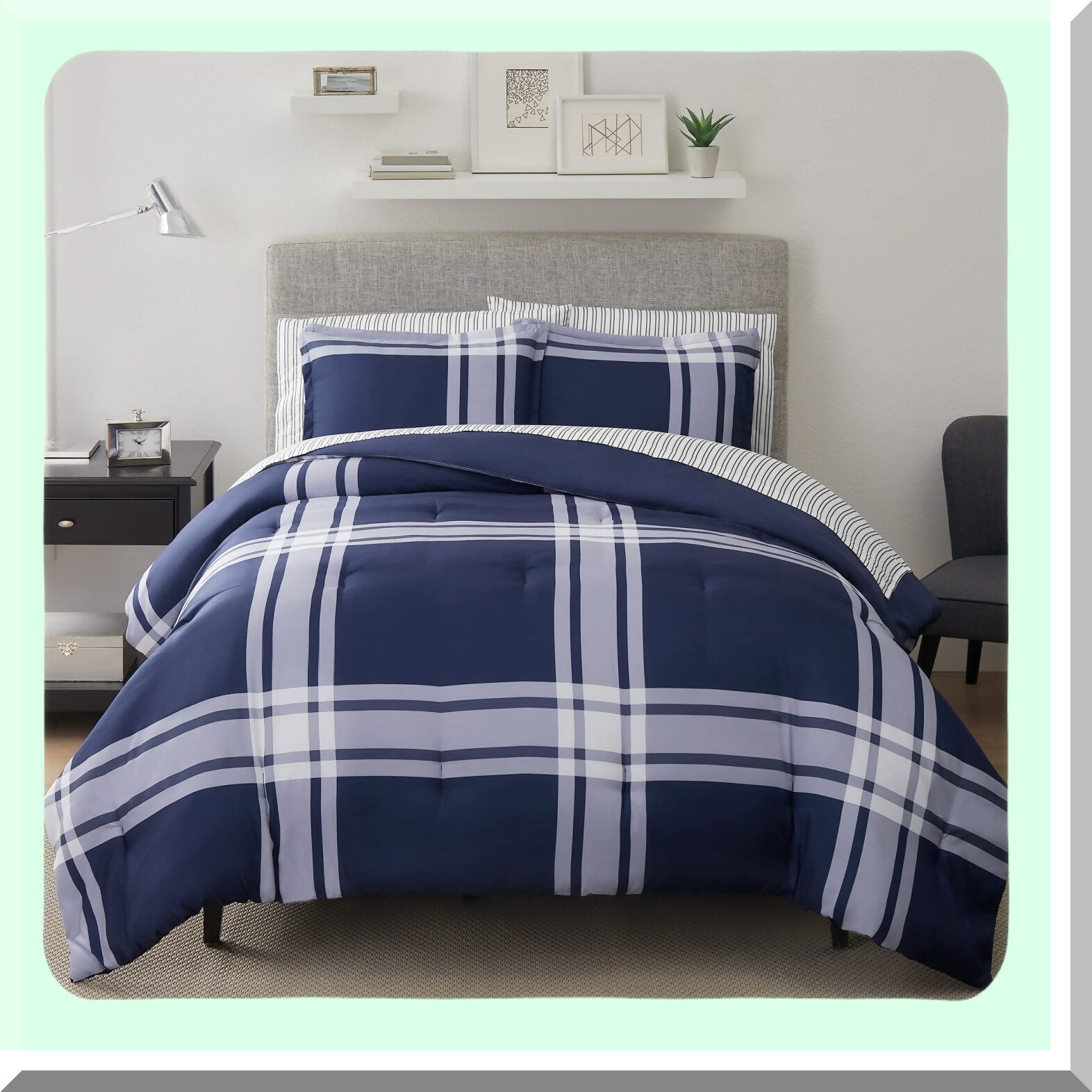 Experience the ultimate comfort with our 5-piece bedding set in Twin/Twin XL size. The hypoallergenic technology ensures a fresh and clean bed every night. The modern jax plaid design adds a stylish touch to any room. Complete your look with matching sheets, duvets, and bed-in-a-bag sets. Stain release treatment makes for easy care, just toss it in the washing machine with like colors. Upgrade your bedding experience with our Simply Clean Comforter Set.