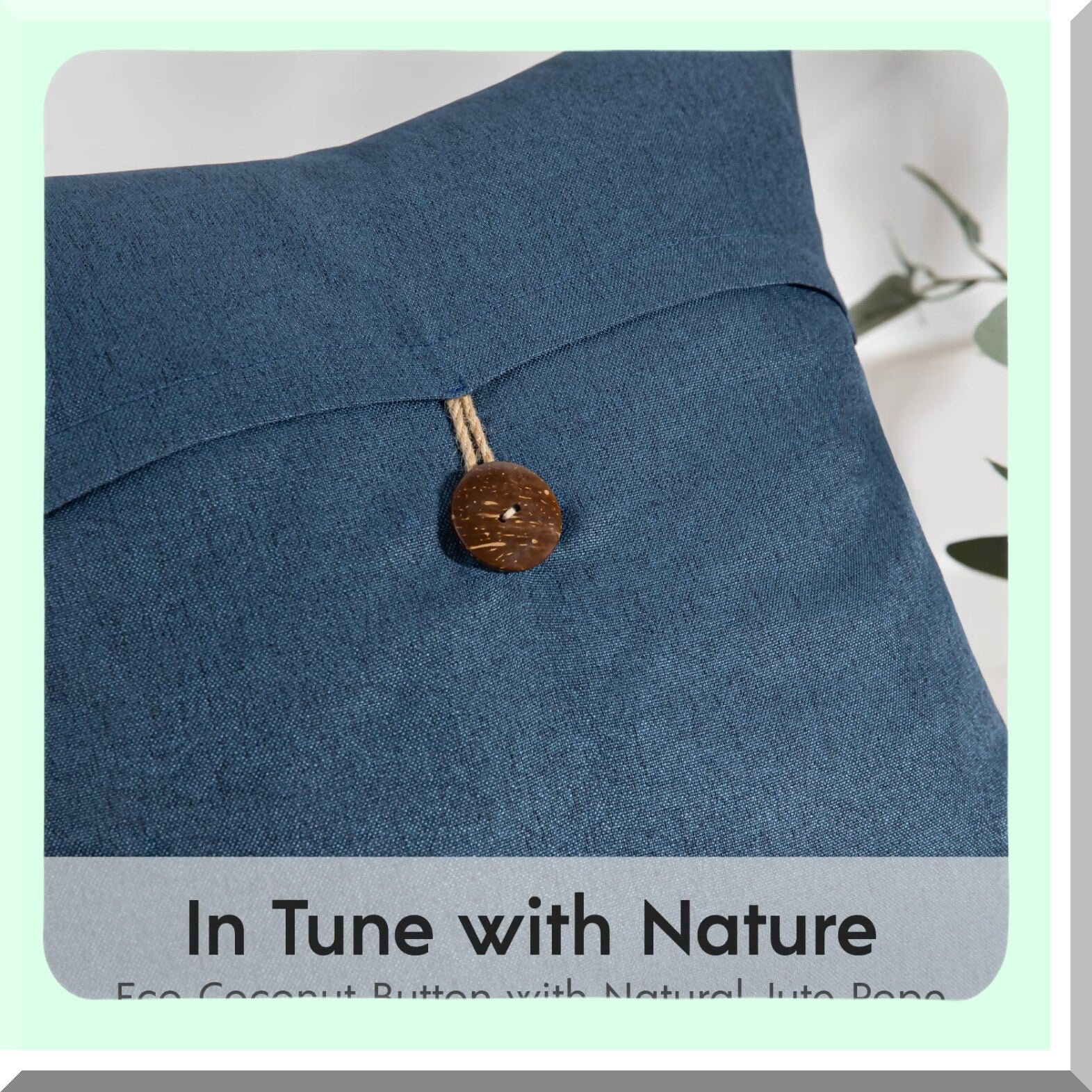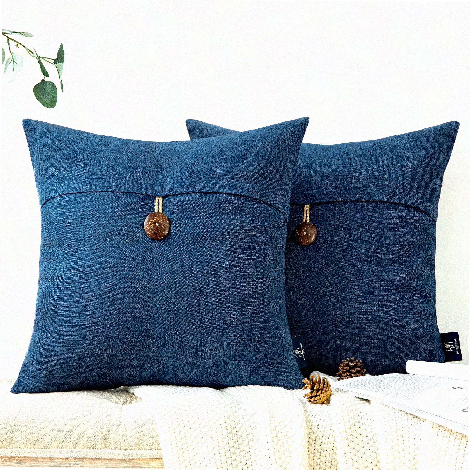 Vintage Linen Button Farmhouse Pillow Covers Set - Navy Blue Decorative Cushion Cases for Couch, Bed, Chair - 20x20 inches (Pack of 2)