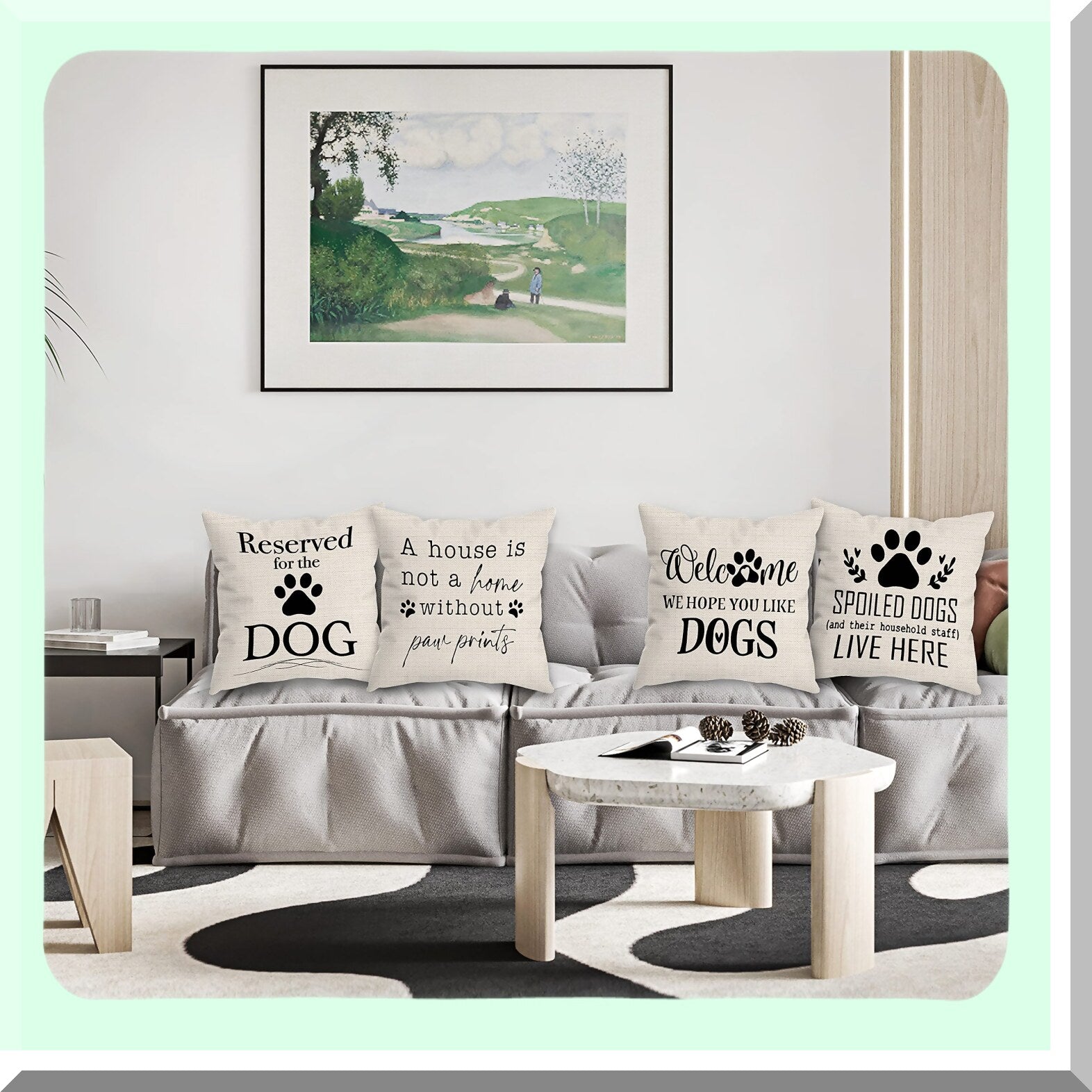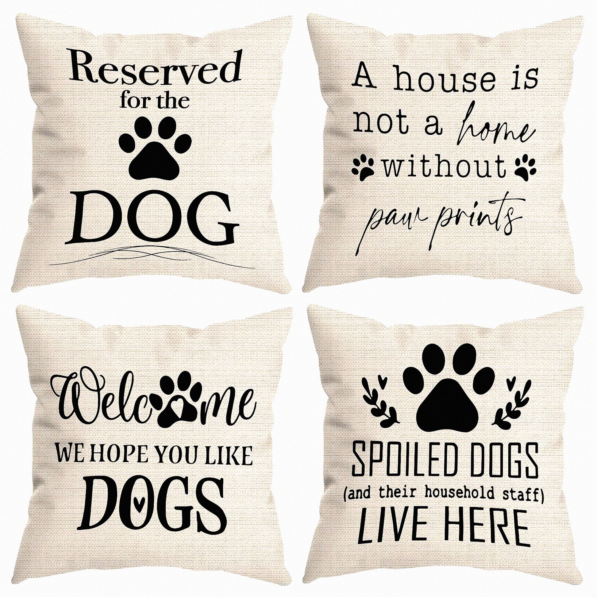 Funny Dog Quotes Decorative Pillow Cover Set - Dog Claw Welcome Collection - 18x18 Inch Funny Dog Lover Gifts for Women - Room Bed Sofa Decor - Set of 4