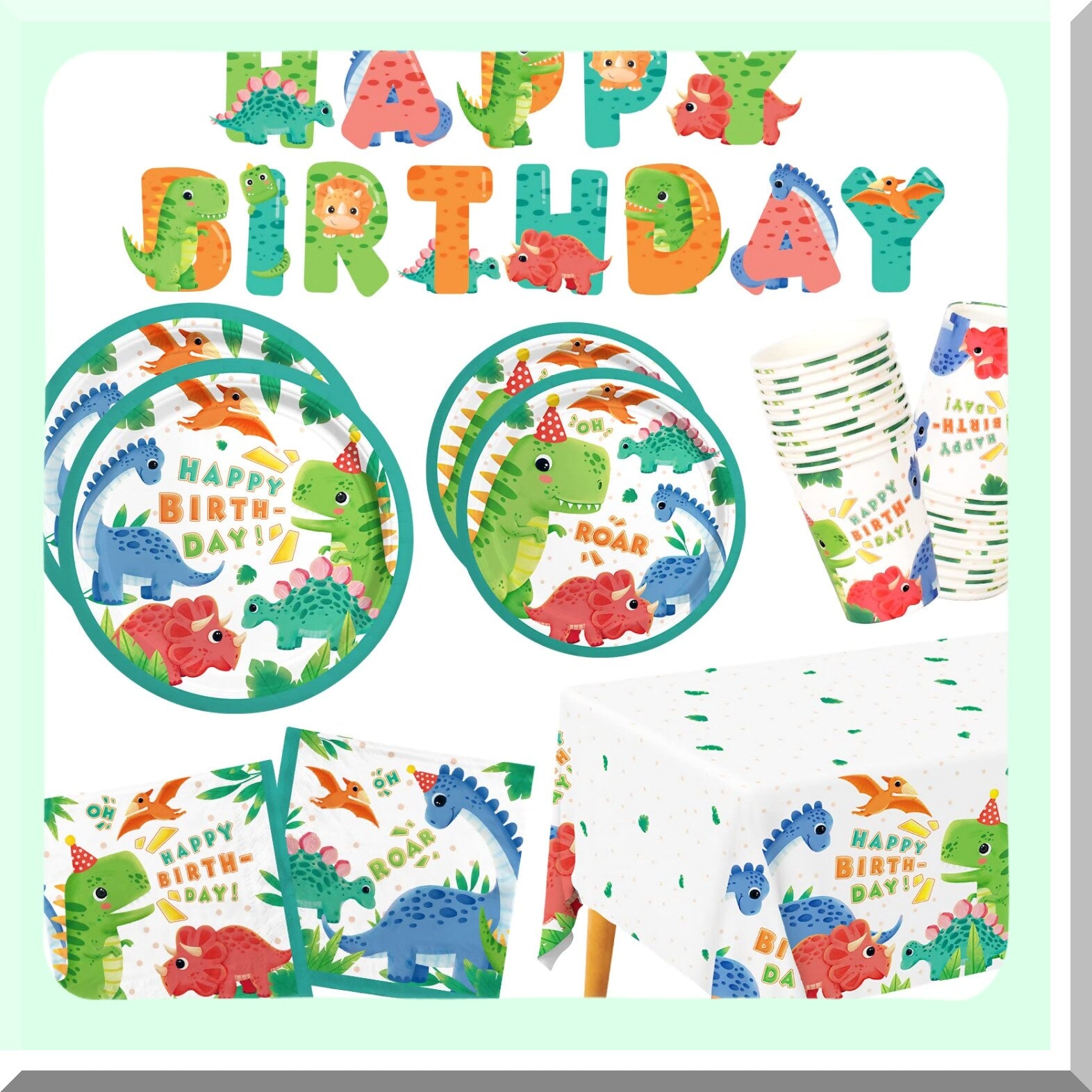 Make your child's birthday party unforgettable with this dinosaur-themed party pack! Perfect for creating a fun and exciting atmosphere, this pack includes everything you need for a fantastic celebration. From colorful decorations to party favors, this set has it all. Let your child's imagination run wild with this attractive and exquisite party pack that is sure to be a hit with all the little party guests. Get ready for a roaring good time!