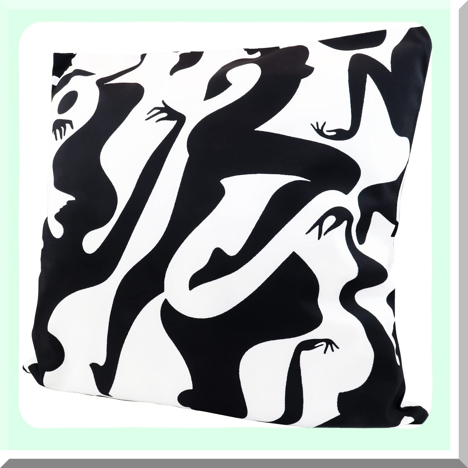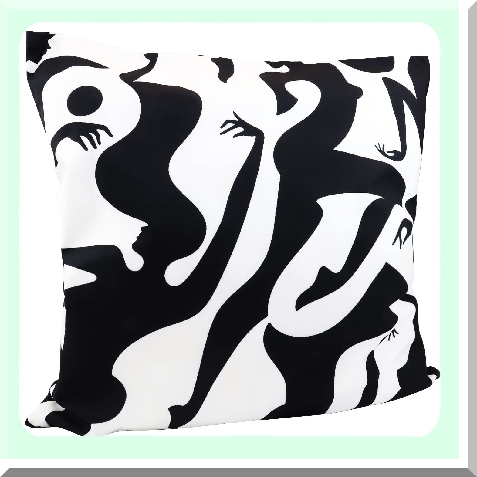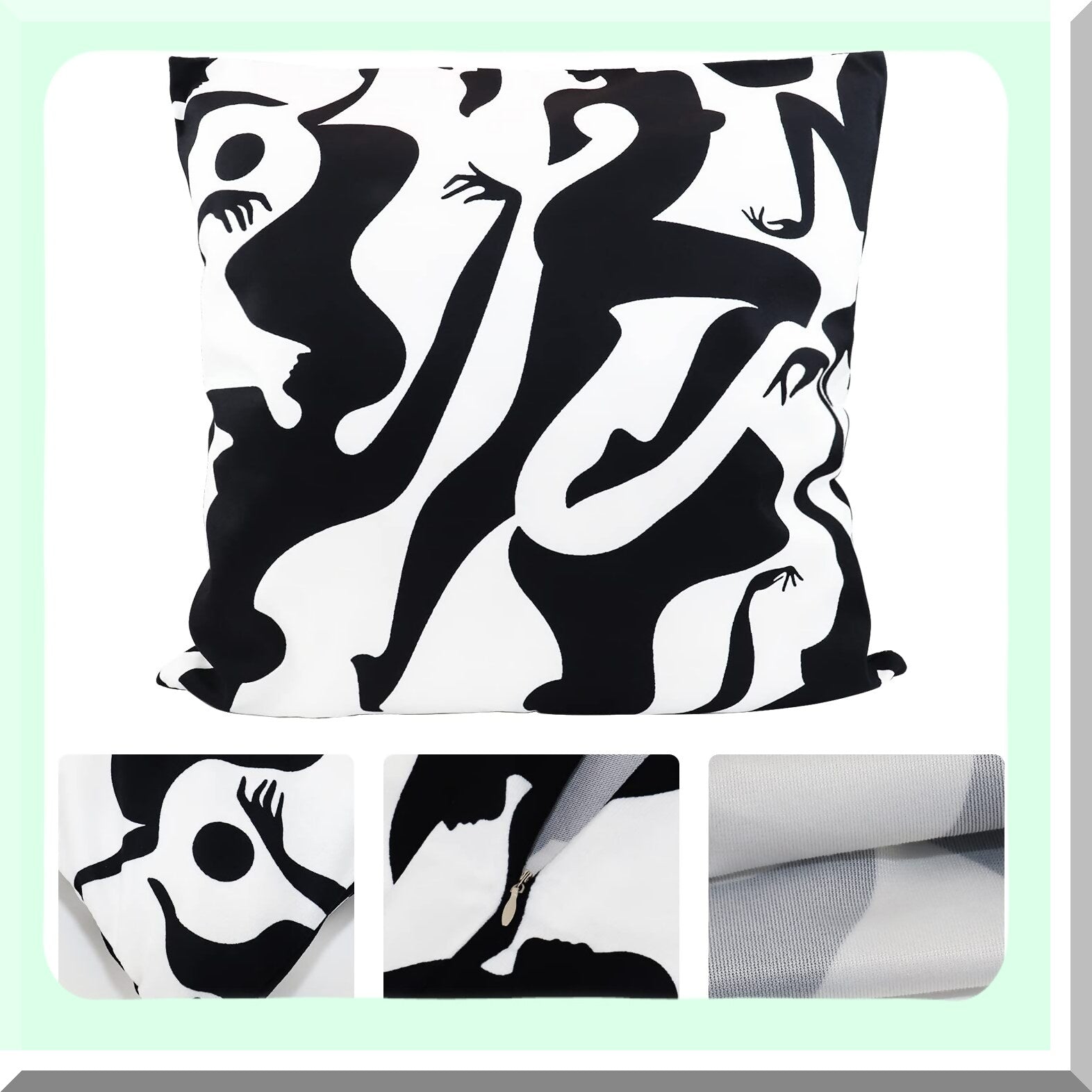 Vintage Velvet Lumbar Geometric Pillow Cover - Soft Boho Decorative Cushion Case for 18x18 Inch Throw Pillows in Black & White Textured Body Design