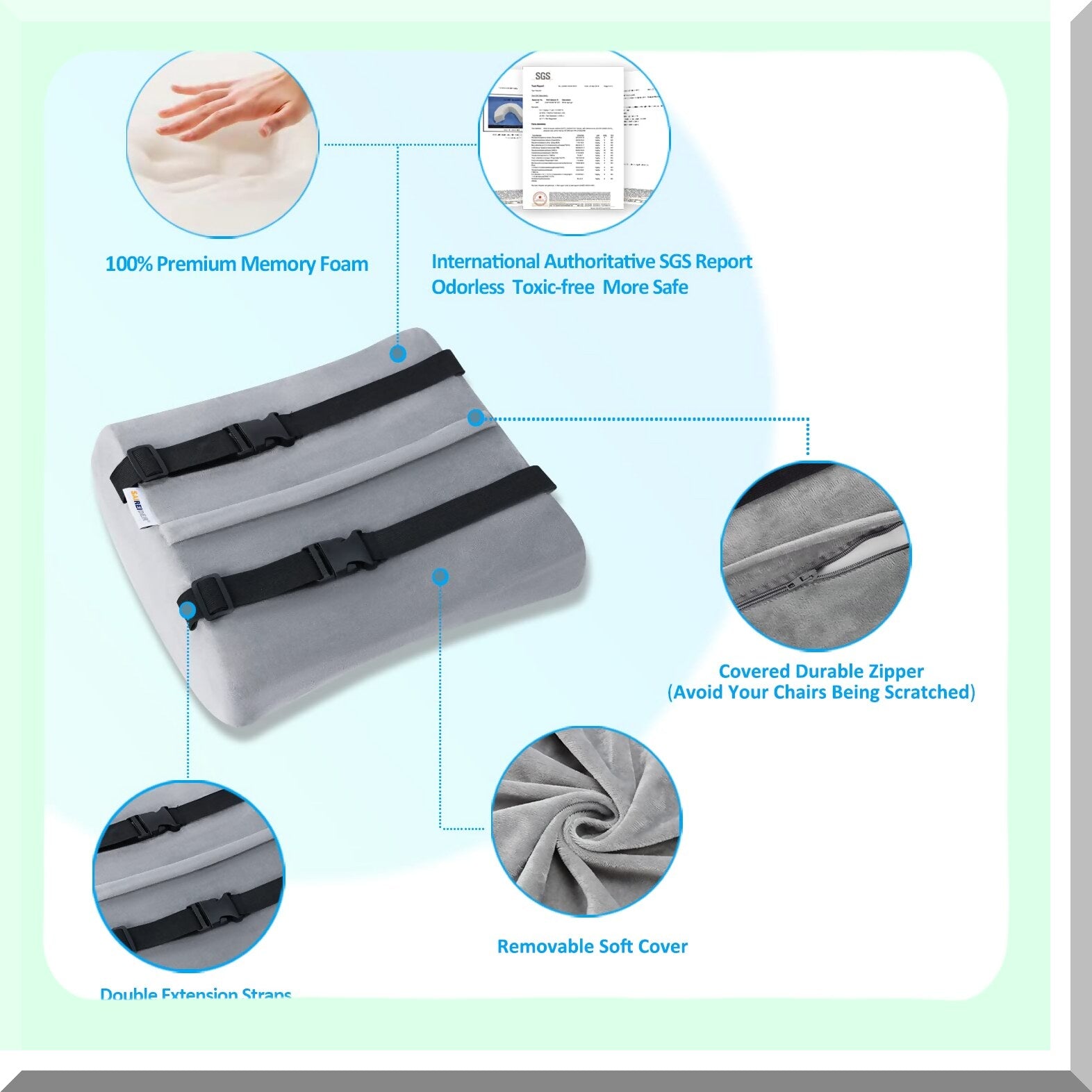 ErgoComfort Memory Foam Lumbar Support Pillow - Back Pain Relief & Posture Improvement - Double Adjustable Straps for Office, Car, Gaming Chair - Grey