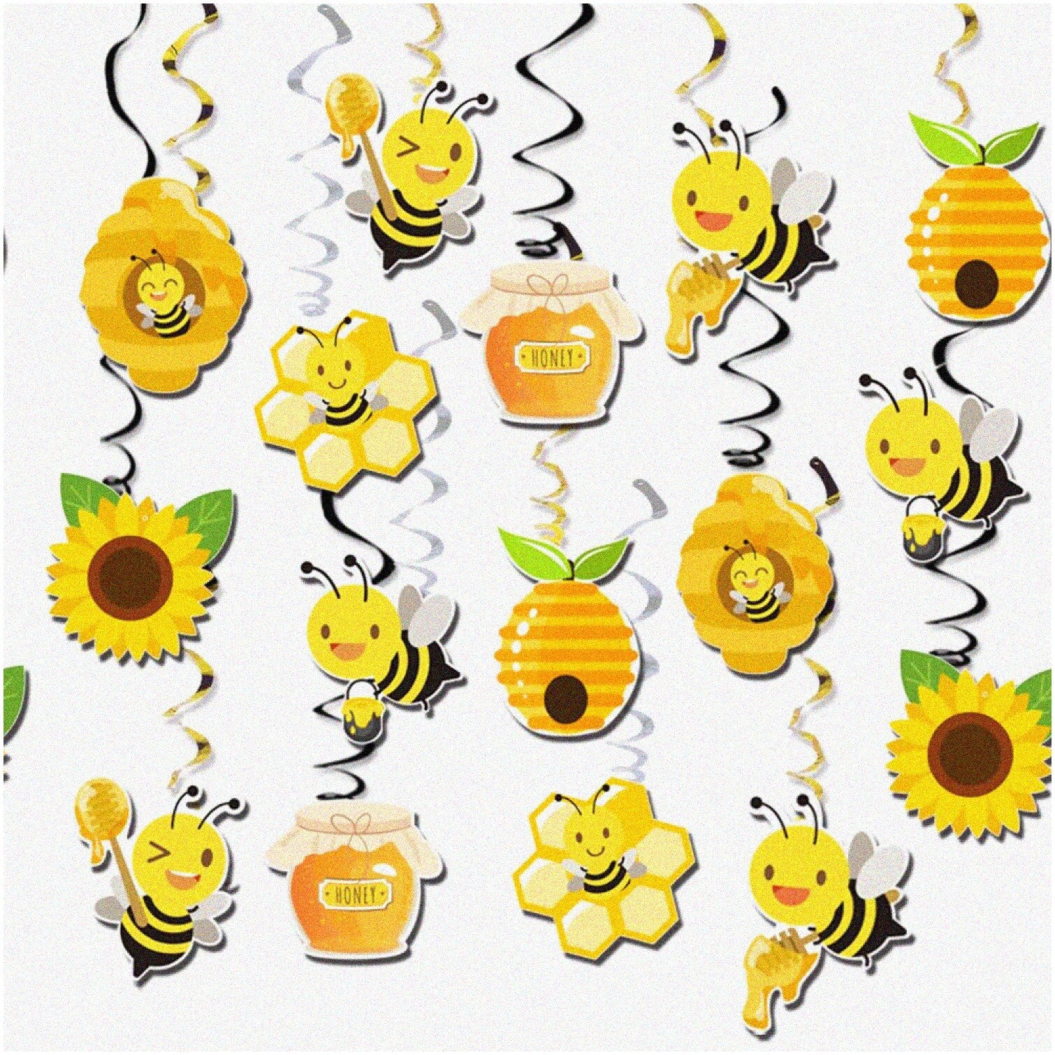 Transform your celebration into a lively hive with this 32-piece hanging swirl decoration set. Featuring double-sided printed patterns, the decorations showcase honey bees, bee houses, honeycombs, sunflowers, and honey jars in warm, vibrant colors. These whimsical swirls add a charming touch to any event, creating a memorable atmosphere filled with delightful details. Perfect for birthdays, baby showers, gender reveals, bridal showers, and first bee days, they help set a joyful scene. The intricate designs highlight adorable bees with delicate wings and cheerful smiles, bringing a vintage-inspired charm to your party. The hanging swirls are designed to elevate the ambiance, making your event stand out with their enchanting presence. Whether used indoors or outdoors, these decorations are ideal for capturing fun photos and creating lasting memories. They are a wonderful addition to any honey bee-themed celebration, adding a touch of whimsy and warmth to your special day.