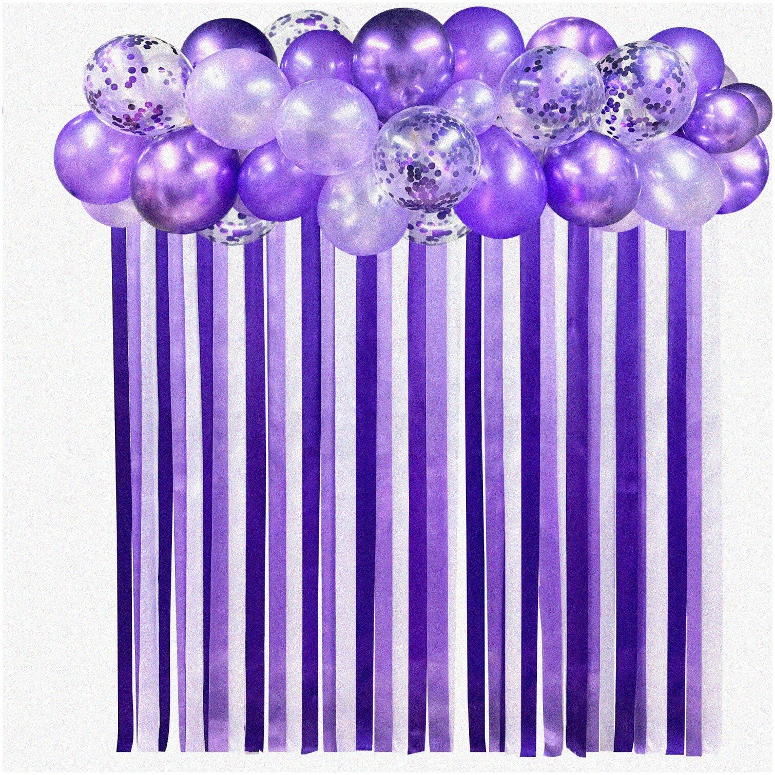 Celebrate your special occasion with this vibrant decoration kit, featuring a colorful ribbon fringe curtain, streamer balloons, and a garland backdrop. The package includes three shades of purple ribbons, each measuring 65.6 feet long and 1.97 inches wide, perfect for creating a lively atmosphere. Also included are 40 balloons in various sizes and colors, with an extra balloon of each color to ensure full coverage. The decorations are suitable for a variety of events such as birthdays, weddings, graduations, and more. Easy-to-follow instructions are provided for a simple setup process, taking approximately 30 minutes. Natural polyester ribbons may have loose threads, which can be easily snipped with scissors. This set offers a fun and colorful way to enhance your celebration space, making it ideal for creating memorable moments.