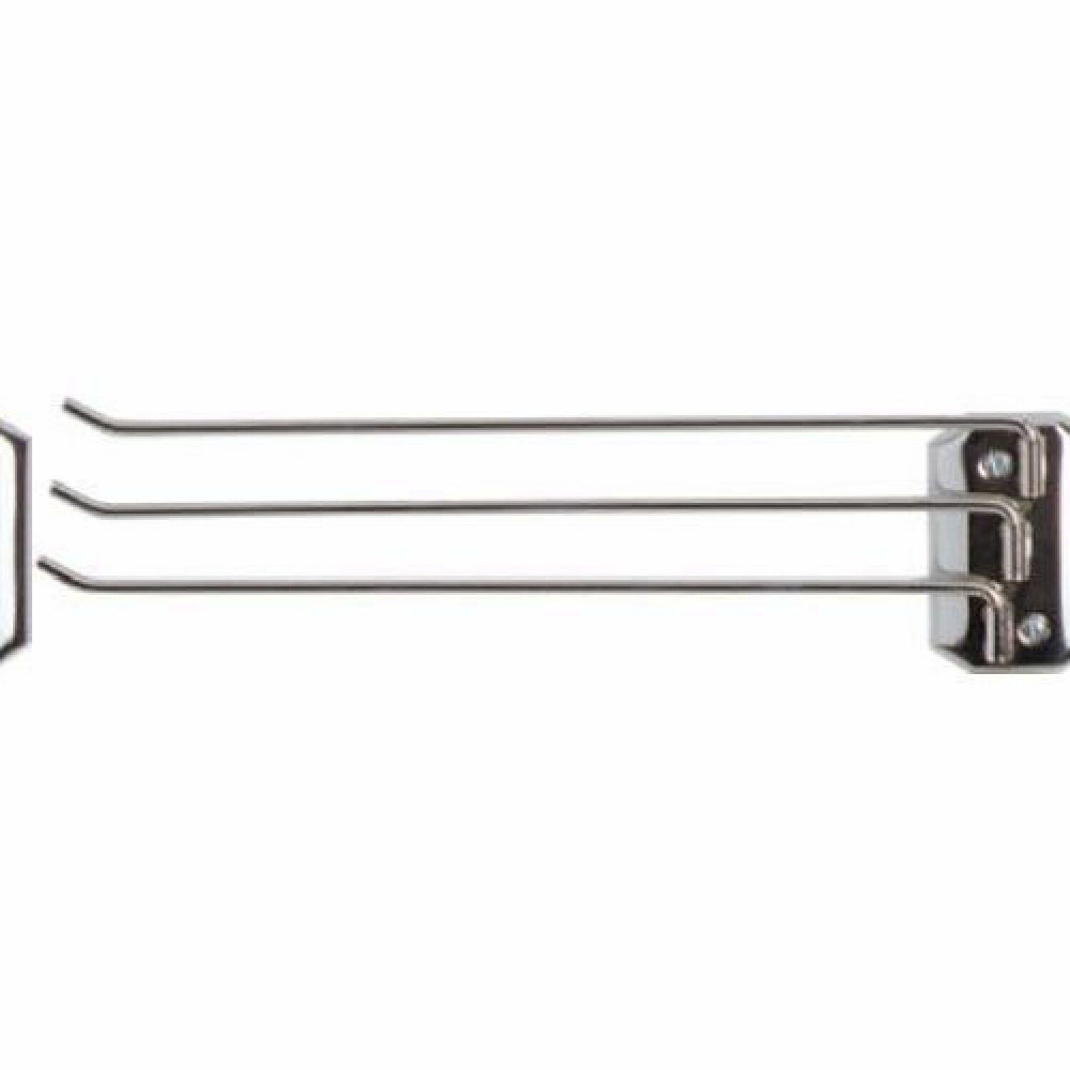The 38190 Swing Arm Kitchen Towel Rack features three chrome arms that spread out for rapid drying. Its simple design makes it suitable for various uses, including towels, washcloths, belts, or ties. The arms are hinged to a sturdy die-cast back plate, ensuring durability and stability. With a size of 19-1/2 inches in length and a 2-inch projection, it provides ample space for hanging items. The rack is very easy to install and comes with all necessary mounting hardware. Its sleek chrome finish adds a clean, modern look to any space, making it a practical addition to kitchens or bathrooms. The all-purpose design and hinged arms make it versatile and convenient for everyday use. This product combines functionality with a straightforward design, offering a reliable solution for organizing and drying various items efficiently.
