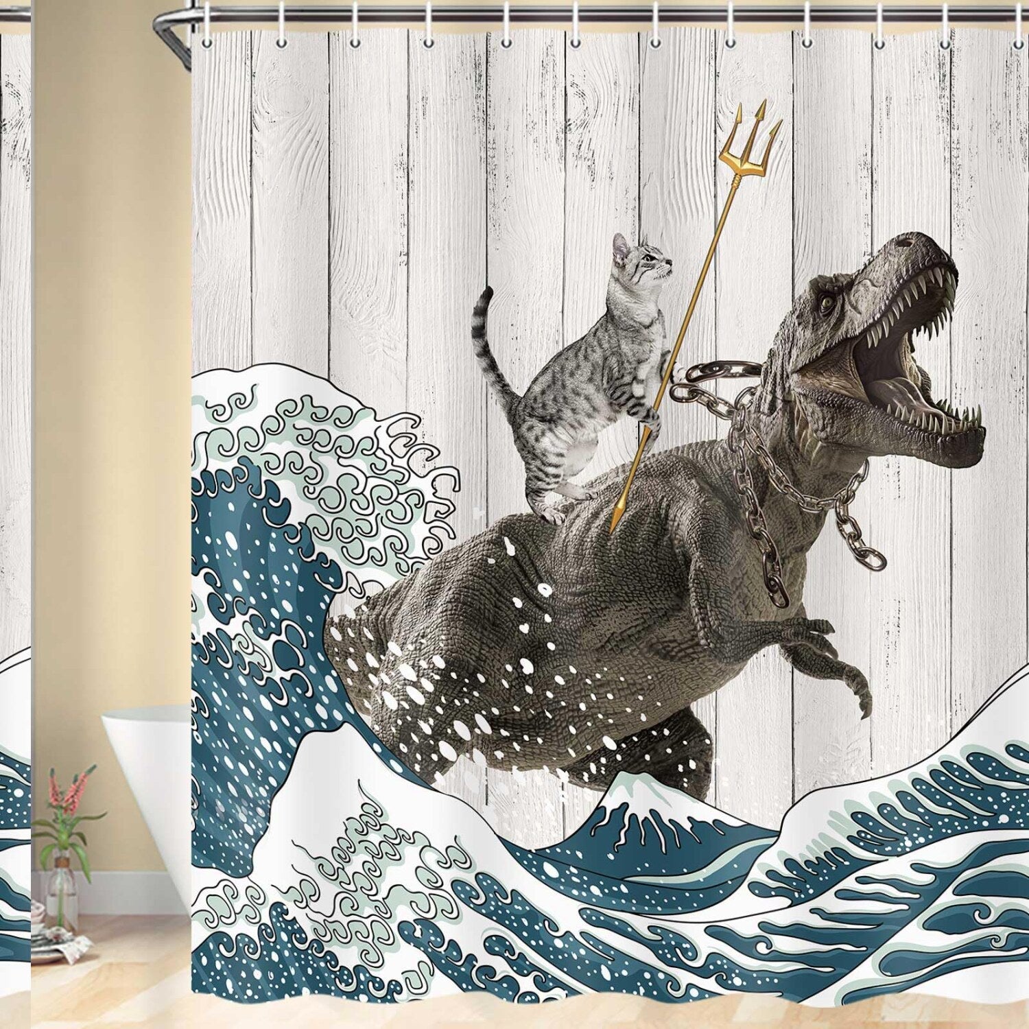 This shower curtain measures 70 x 70 inches, suitable for standard shower stalls and bathtubs. Crafted from 100% polyester fabric, it offers durability, wrinkle resistance, and shape retention. The waterproof material ensures your bathroom stays dry and clean, while its high strength and elastic recovery provide long-lasting use. The design features playful cats, dinosaurs, ocean waves, and rustic wooden farmyard themes, adding a fun and rustic touch to any bathroom decor. Easy to install, this fabric curtain is also machine washable and quick drying, making maintenance simple. Its versatile size and durable construction make it an ideal addition to enhance your bathroomโs aesthetic while providing practical functionality.