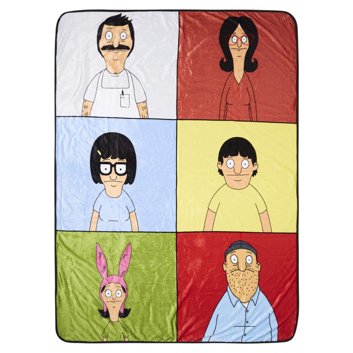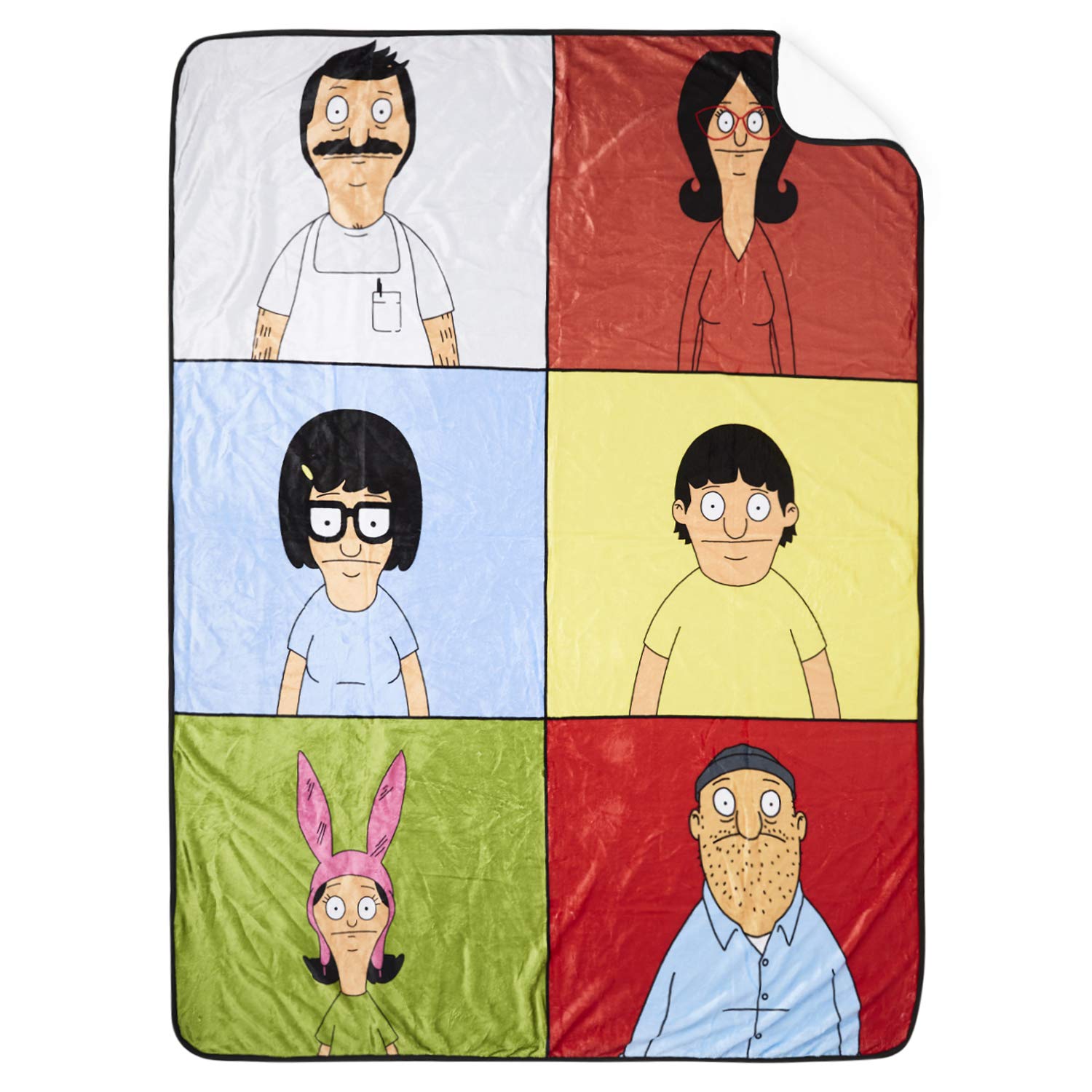 BOBS BURGERSBob believes his burgers speak for themselves and isn't afraid to offer a variety of off-beat creations..BEST VALUEEach throw blanket has a design and is built to keep you comfotable and warm.OFFICIALLY LICENSED BOBS BURGERS PRODUCTOfficially licensed apparel and high-quality prints on this fleece throw blanket make it the perfect gift for men everywhere. Whether it be for and achievement, , or a birthday. GREAT FOR TRAVEL OR EVERYDAYThis perfectly sized blanket makes traveling fun and comfortable! Perfect for hanging out and watching a movie or on a cold night to keep you warm.SOFT & COMFYThis soft blanket measures 45" x 60". It is the perfect size blanket for traveling to the movies, sporting events or just hanging on your sofa.. Fleece Throw BlanketOfficially Licensed