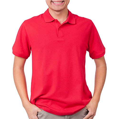 Young Men's Prep School Uniform - Short Sleeve Polo Shirt (Small (34/36), Red)