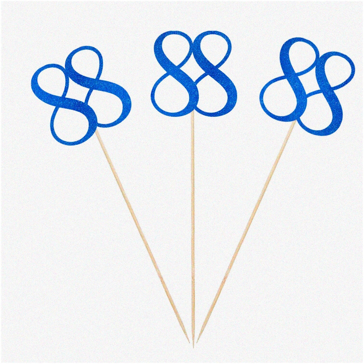 Celebrate a special 88th birthday with this set of sparkling blue centerpiece sticks. The 12-pack includes double-sided glitter number cut-outs featuring the number 88, each attached to a stick for easy placement. These eye-catching table toppers add a touch of elegance and charm to any celebration, making your loved one's milestone memorable. The glittery design enhances the festive atmosphere, creating a visually stunning display. Perfect for decorating tables at birthday parties or anniversary events, these versatile toppers are simple to set up and remove. With 12 pieces included, you can decorate multiple tables or create a cohesive look throughout your celebration space. Bring a sense of enchantment and sophistication to your event with these dazzling birthday decor accents.