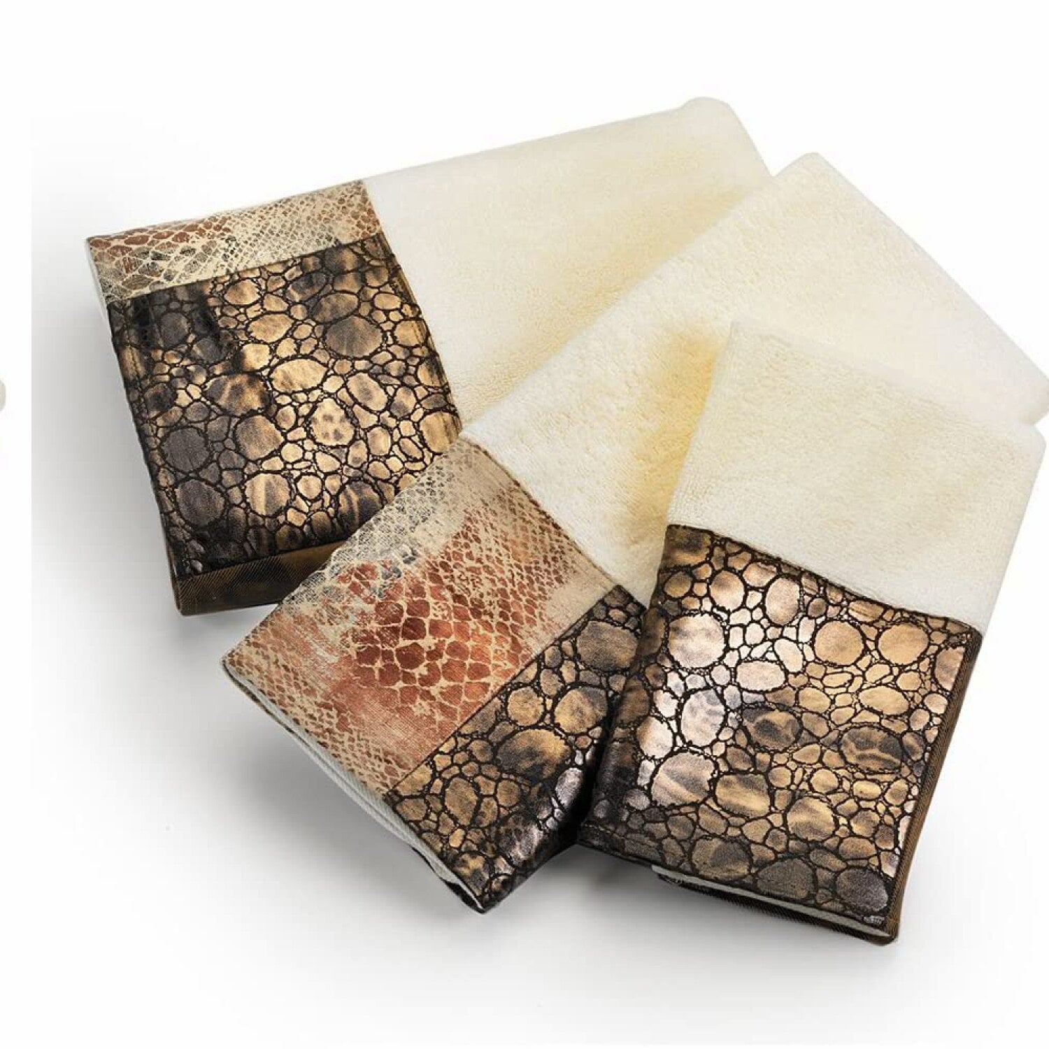 This 3-piece bathroom towel set includes a bath towel, hand towel, and wash towel, crafted from heavy high-grade cotton material for durability and long-lasting use. Designed with a distinctive animal print pattern, these towels add an elegant and beautiful touch to any bathroom decor. The set features a unique design that complements various styles, providing a cohesive and stylish look. Easy to care for, the towels can be machine washed in cold water and hung to dry, maintaining their quality over time. Perfect for enhancing your bathroomโs aesthetic, this towel set combines functionality with a contemporary, luxurious appearance. The matching design ensures a coordinated look, making it an ideal addition to your bathroom ensemble. Whether updating your space or giving a thoughtful gift, this set offers both practicality and style for everyday use.