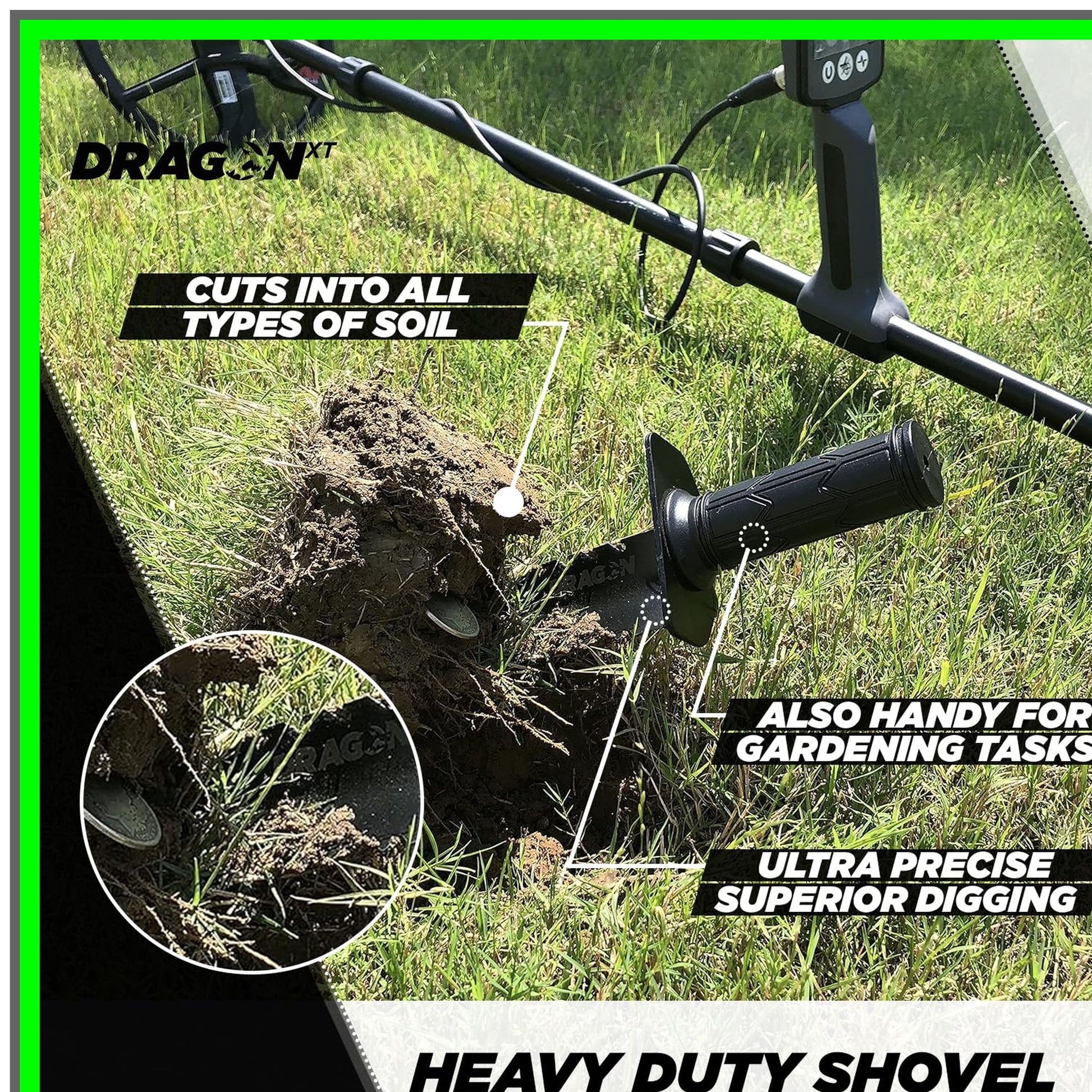 DragonXT Heavy Duty Metal Detecting Shovel with Double Serrated Edge