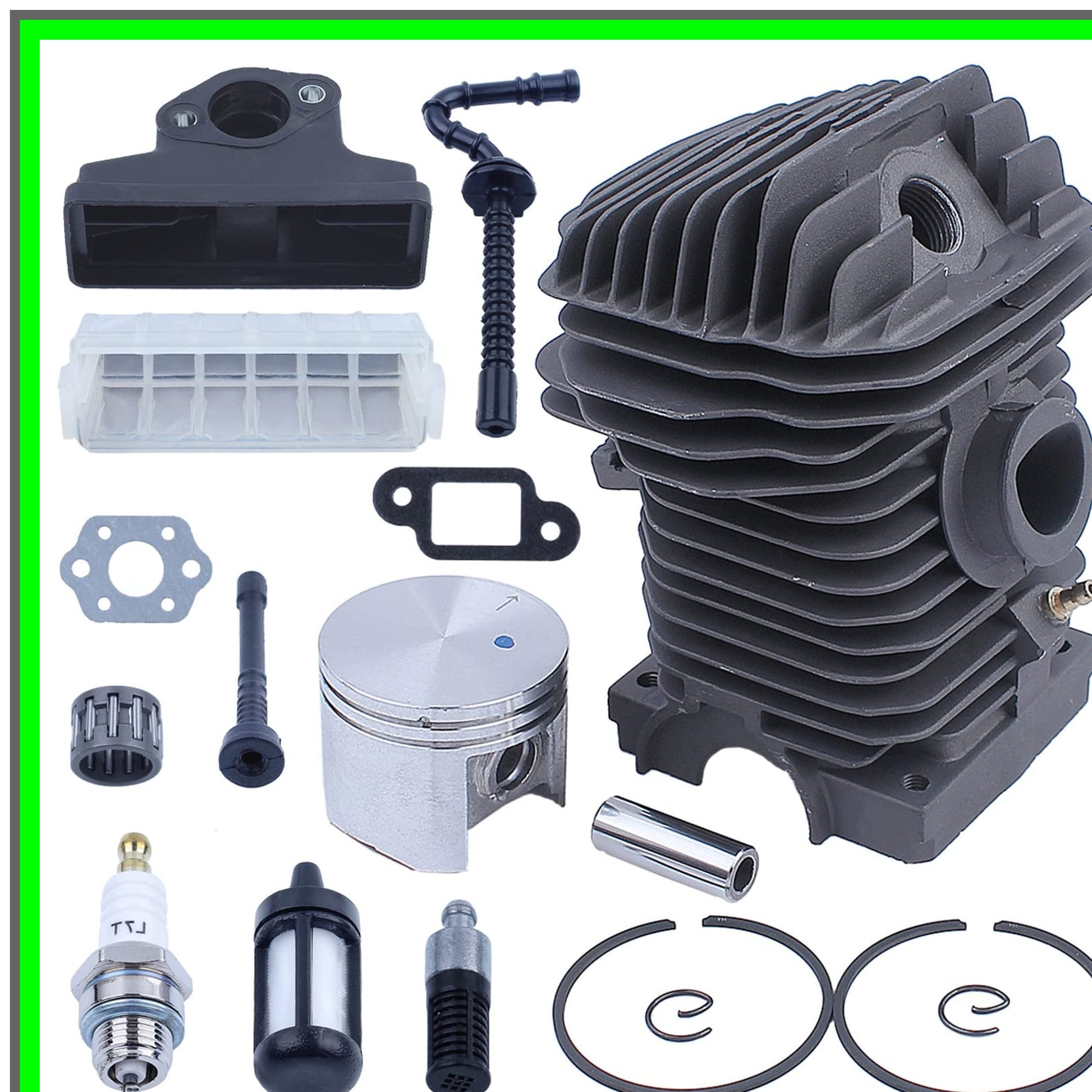 Revitalize your chainsaw with our premium 42.5mm Cylinder Kit, expertly designed for compatibility with popular models including Stihl 023, 025, MS230, and MS250. This comprehensive kit is the perfect solution for restoring your chainsaw's performance, ensuring you can tackle any cutting task with confidence.Each kit includes essential components: a high-quality cylinder, a precision-engineered piston, a sturdy pin, two durable rings, and two circlips. Additionally, we provide an air filter, fuel line, fuel filter, oil line, oil filter, spark plug, needle bearing, muffler gasket, and carburetor gasket. This all-in-one package ensures you have everything you need for a seamless installation and optimal operation.Crafted with durability in mind, our cylinder kit meets or exceeds OEM specifications, guaranteeing a perfect fit and reliable performance. The meticulous design enhances engine efficiency, reduces emissions, and prolongs the life of your chainsaw, making it an essential upgrade for both professional and DIY users.We stand behind our product with a 100% satisfaction guarantee. If youβre not completely satisfied within 90 days, we offer hassle-free returns, refunds, or exchanges for any defects or accidental damages. Your satisfaction is our priority, and we are here to assist you with any inquiries.Before placing your order, we recommend comparing our parts with your original components to ensure compatibility. Upgrade your chainsaw today and experience the difference in power and efficiency with our 42.5mm Cylinder Kit! Perfect for those who demand quality and reliability in their tools.