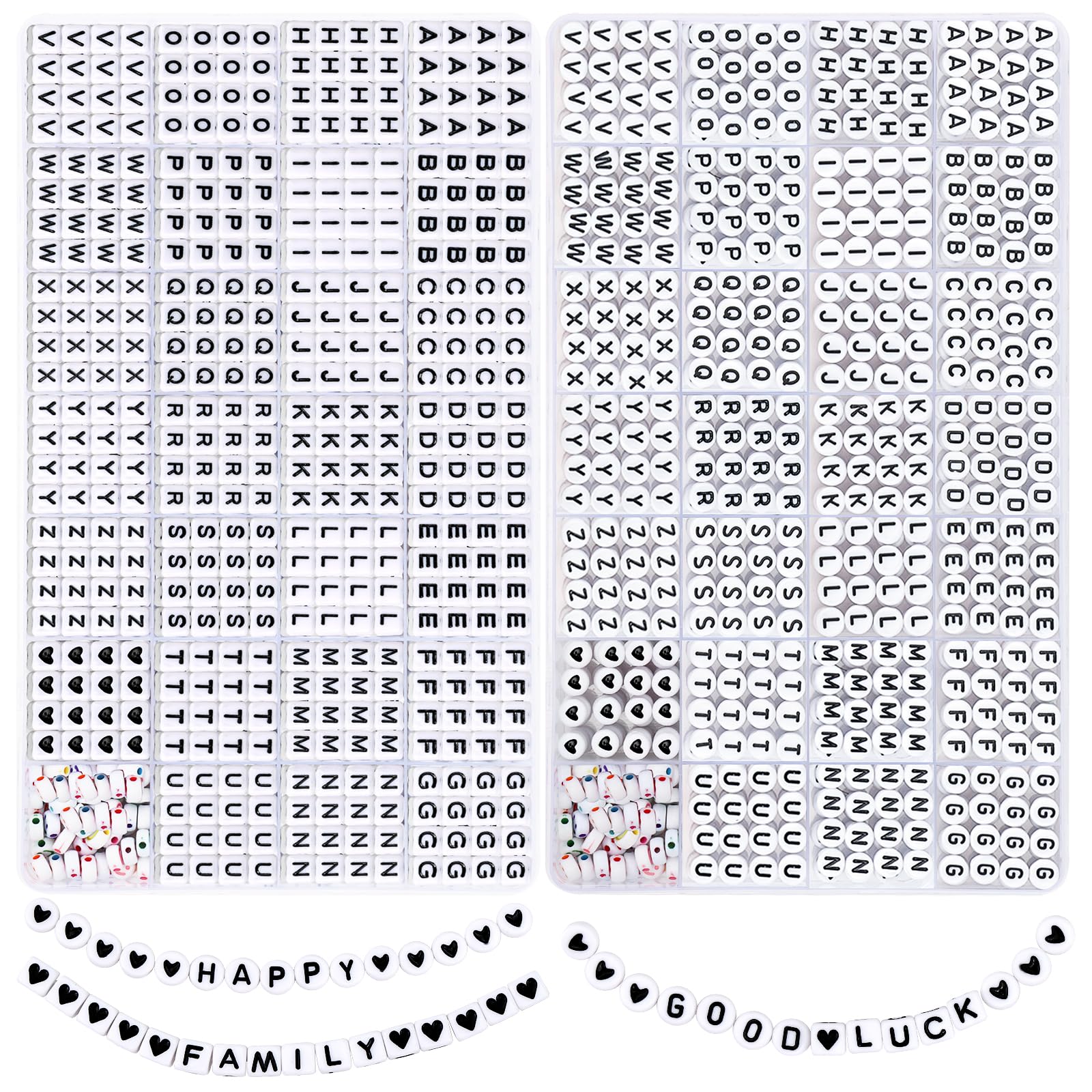 Discover a set of 1904 alphabet beads in two boxes, featuring oblate and square letter beads with black letters on a white background. Each box includes heart and smiley face beads, ideal for personalized jewelry projects. These versatile beads allow you to craft unique bracelets and necklaces that showcase your individual style. Easy to combine with clay beads, seed beads, spacer beads, and pony beads, they offer endless creative possibilities for making fun and distinctive jewelry pieces. Crafted from high-quality acrylic, the beads are produced with advanced paint spray and grinding techniques, ensuring smooth surfaces and precisely aligned holes for easy stringing. Add a playful touch to your designs with colorful smiley face and heart charms, perfect for creating eye-catching accessories. Whether for personal use or gifts, these alphabet beads provide a fun and creative way to express yourself through custom jewelry.
