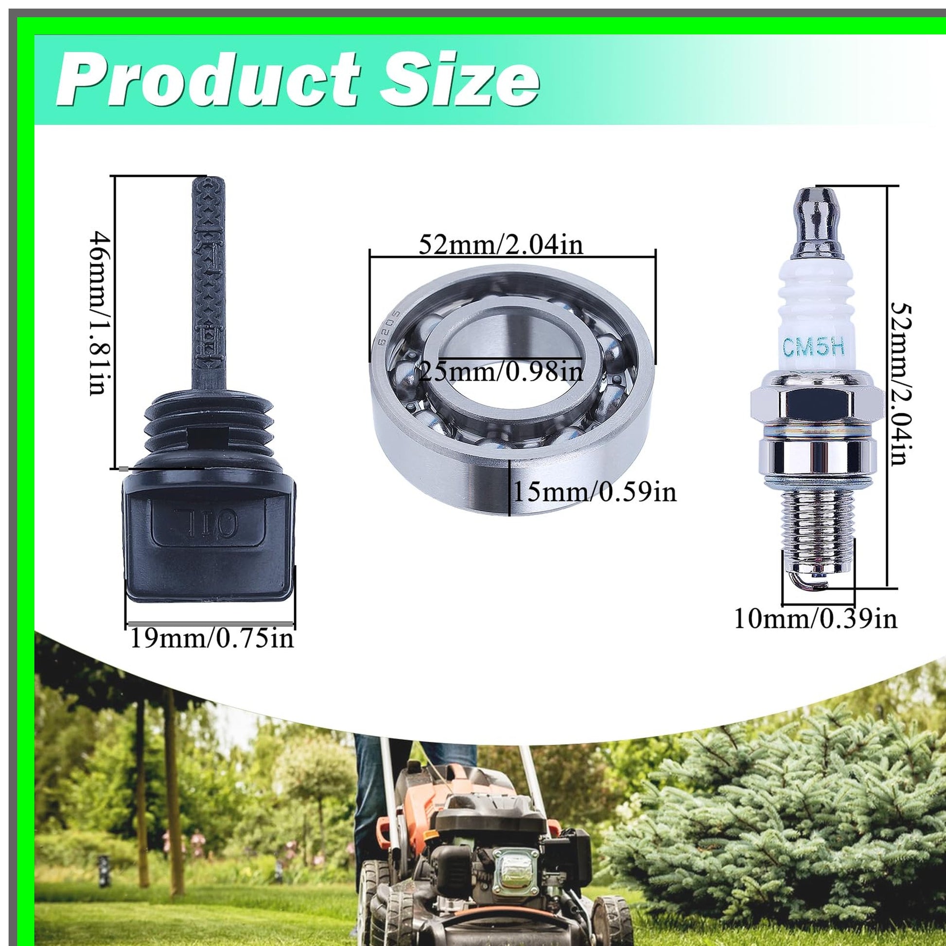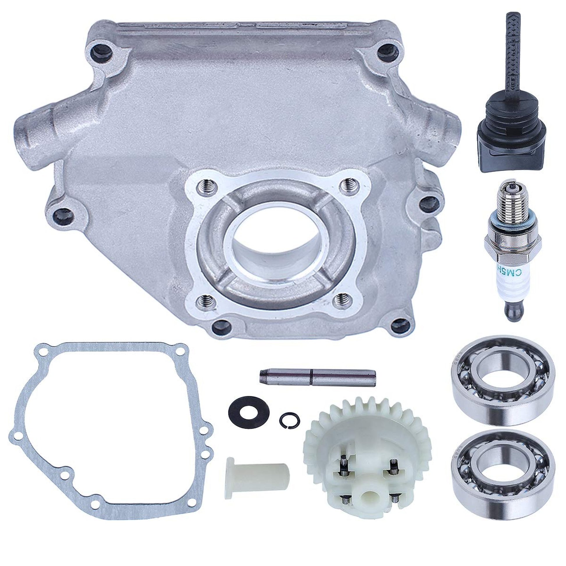 Introducing our premium engine replacement kit, meticulously designed to enhance the performance of your Honda GX35 series engines. This comprehensive set is perfect for those seeking reliable and efficient components to keep their outdoor power equipment running smoothly. Our kit includes essential parts such as a durable crankcase cover and a high-quality crankcase gasket, ensuring a perfect seal and optimal engine performance. The set also features two robust 6205 crankshaft bearings, engineered with precision to provide a perfect fit and long-lasting durability. With an inner diameter of 25mm, an outer diameter of 52mm, and a height of 15mm, these bearings are built to withstand the rigors of demanding tasks.Additionally, you will receive an oil dipstick for easy maintenance checks, a governor gear assembly for precise engine control, and a spark plug to ensure reliable ignition. Each component is crafted to meet or exceed OEM specifications, making this kit a smart choice for DIY enthusiasts and professional mechanics alike.Before purchasing, we recommend comparing your original parts with our detailed images to guarantee compatibility. Our commitment to quality and customer satisfaction means you can trust that you are receiving top-tier products backed by friendly and responsive customer service.Upgrade your Honda GX35, GX35NT, UMK435, or HHT35S engine with our all-in-one replacement kit and experience the difference in performance and reliability. Whether you're tackling yard work or professional landscaping, this kit is designed to keep your equipment in peak condition. Donβt settle for less; invest in quality and ensure your engine runs like new!