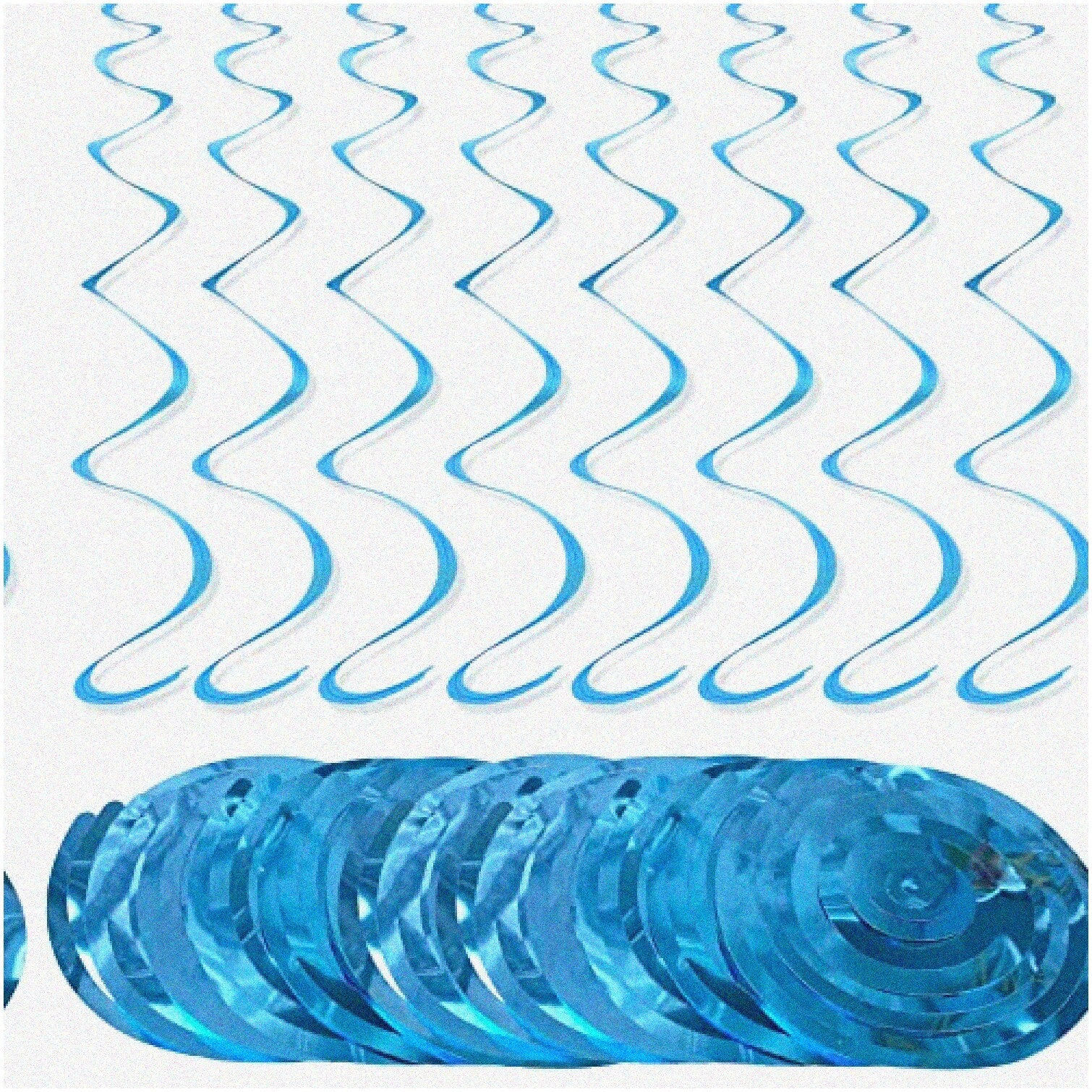 Enhance your event with these vibrant hanging swirl decorations. Made from high-quality PVC, each swirl features a striking blue and black color combination that adds a lively touch to any setting. The package includes 30 pieces, providing ample decoration options for various occasions. These swirling streamers are perfect for creating a dynamic and festive atmosphere at parties, school events, birthdays, or weddings. Their eye-catching design and generous quantity make decorating easy and fun, ensuring your space is filled with energy and style. Whether hung from ceilings, doorways, or walls, these versatile streamers will elevate your celebration with their mesmerizing movement and bold colors. Add a splash of color and excitement to your next event with this set of 30 plastic spiral streamers.
