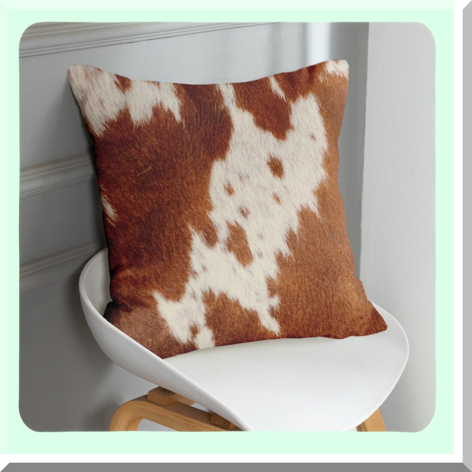 Animal Print Pillow Cover Set - Decorative Sofa Cushion Cases, 16x16 Inches, Cow Brown Design for Home Decor and Outdoor Use - Pack of 4