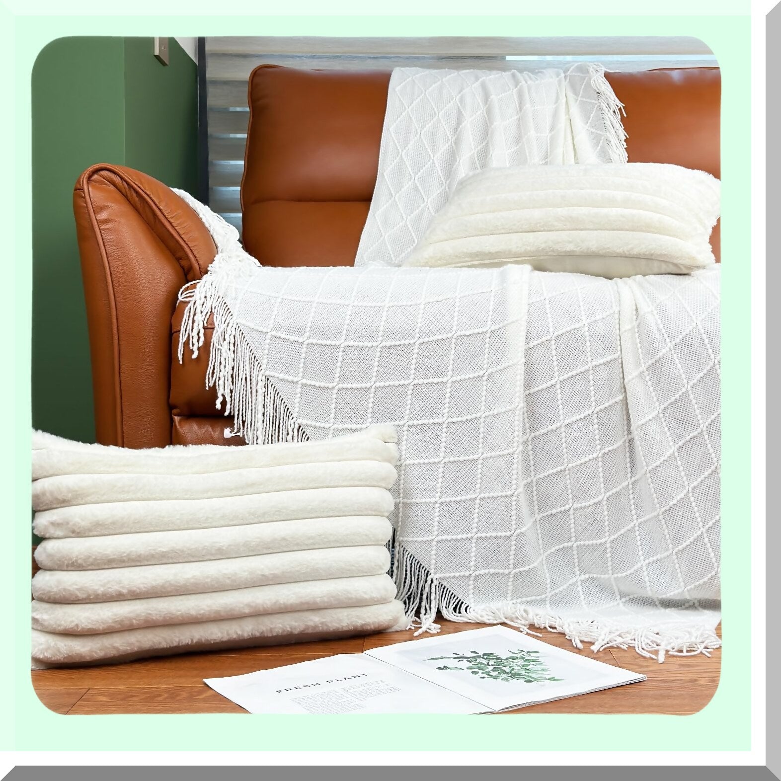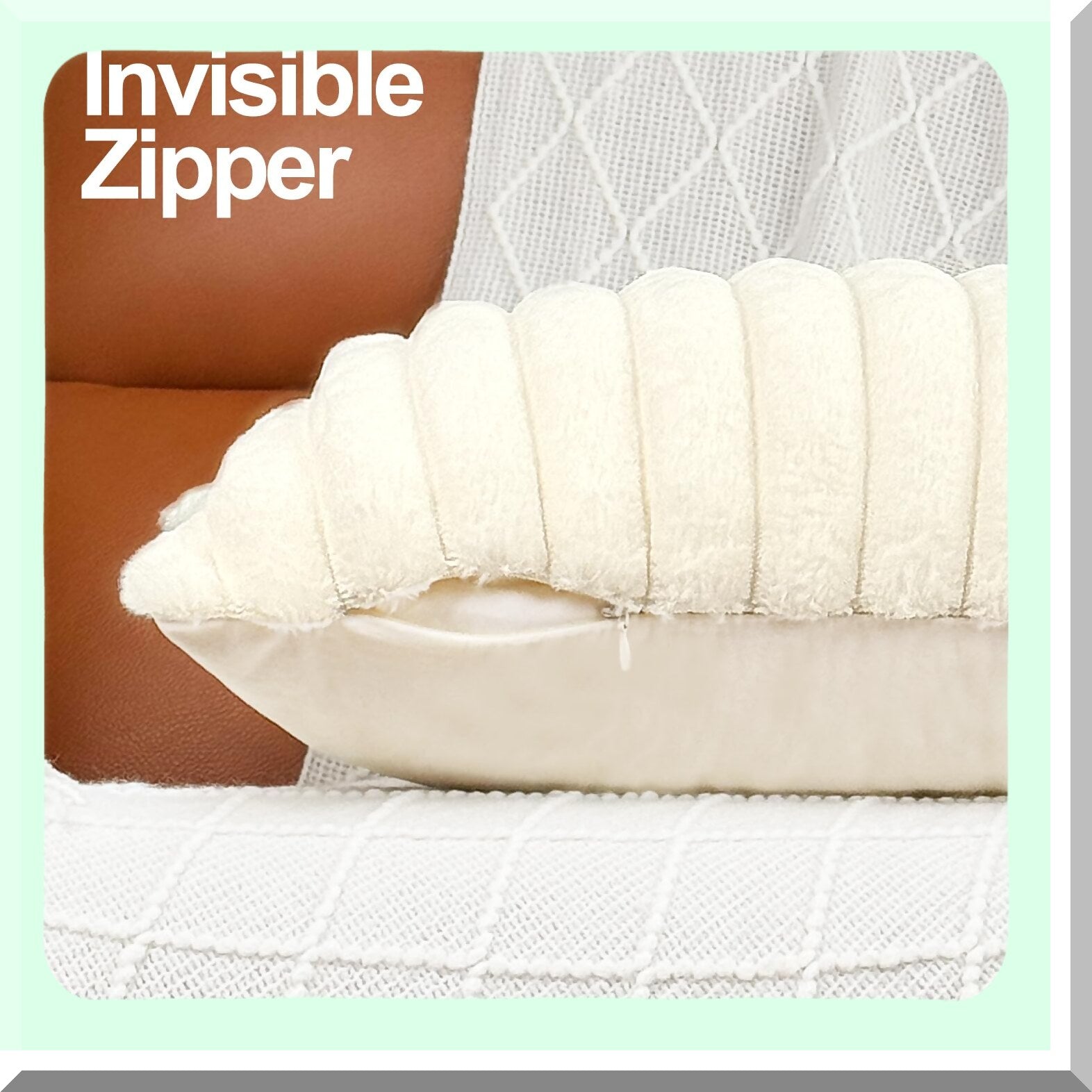 Fluffy Velvet Neutral Decor Pillow Covers - Set of 2, Soft Bed & Couch Decorative Throw Pillow Covers for Living Room Sofa, Cream White Accent