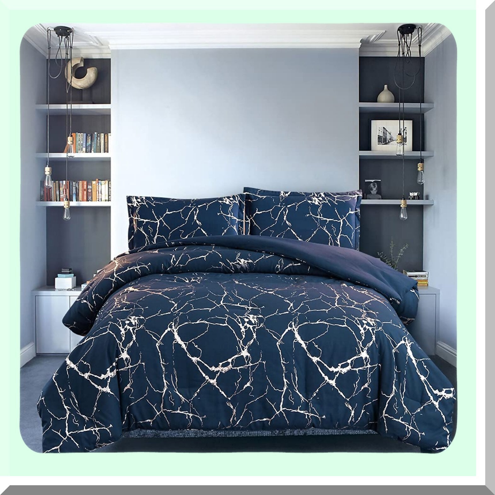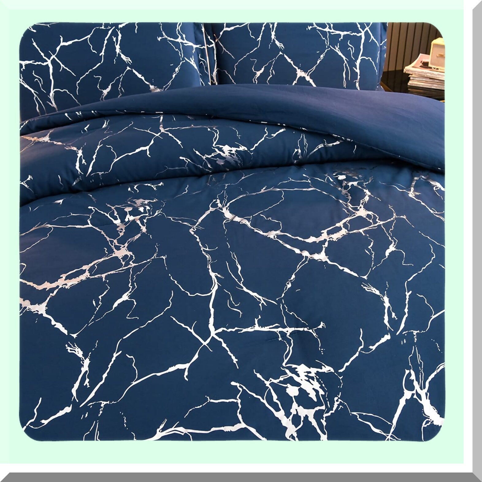 Glittering Silver Marble Comforter Set - California King Size - Metallic Blue/Silver F Print Bedding Set - Luxurious and Stylish - California Dreamin'