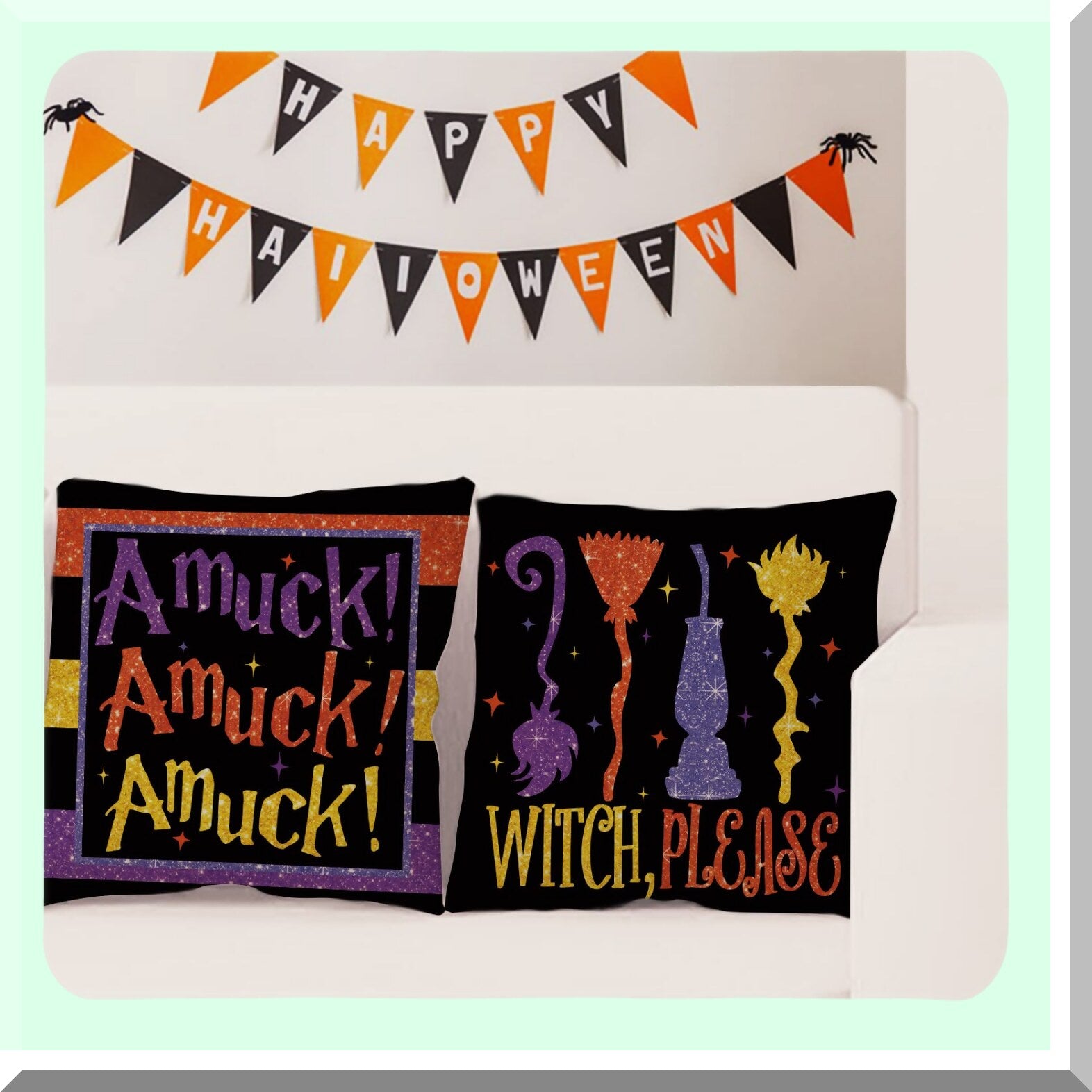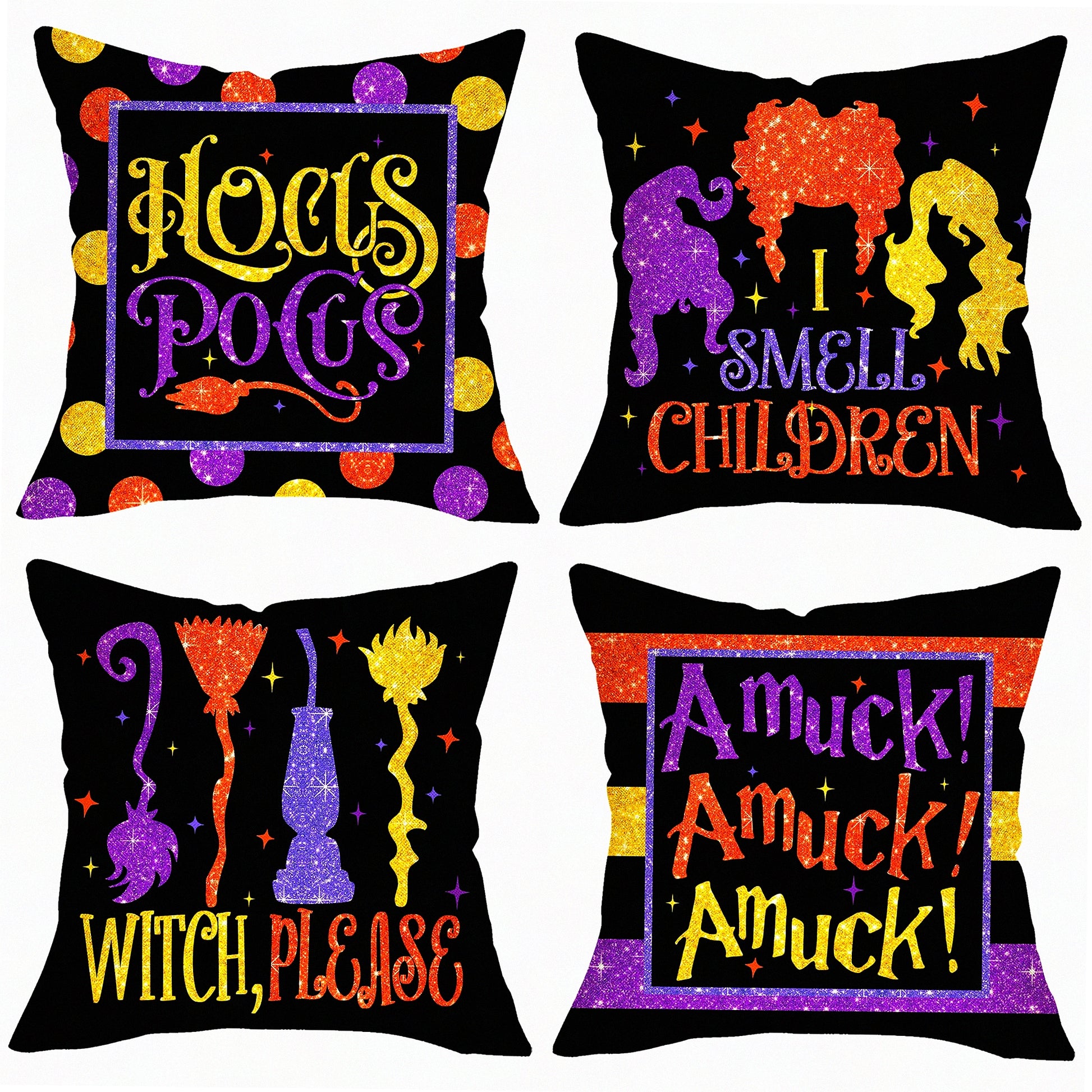 Fall Magic Polka Dot Pillow Covers - Set of 4, Halloween Outdoor Decor, Black Purple Holiday Cushion Cases - 16 x 16 Sofa Couch Home Decor