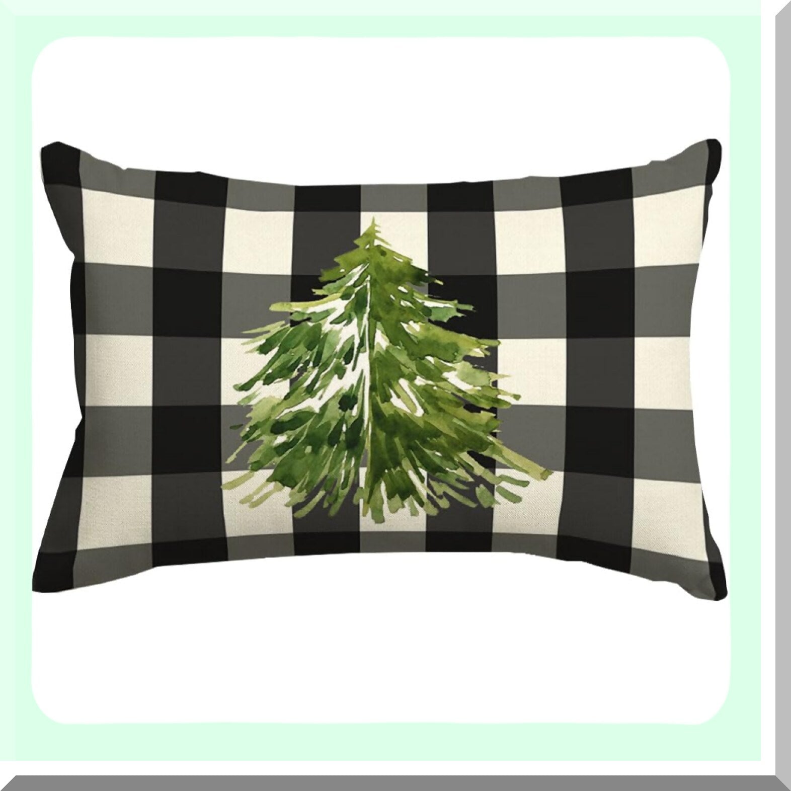 Winter Wonderland Buffalo Plaid Lumbar Pillow Covers - Set of 2 | Farmhouse Holiday Decorative Cushion Cases | Black & White Tree Design for Couch or Sofa | 12x20 Inch Cozy Home Accessories