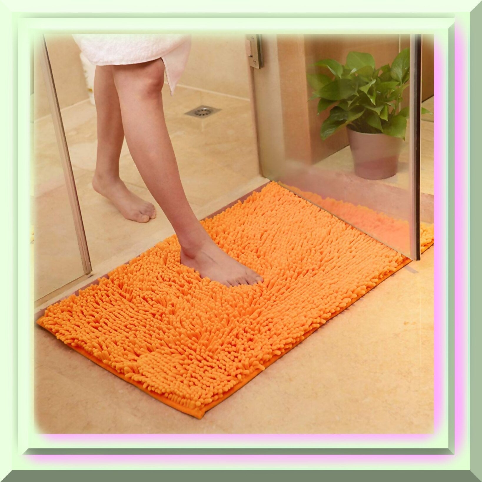 This plush chenille bath rug offers extra softness and high absorbency, making it ideal for bathroom use. Crafted from polyester, it features a longer shag design that provides a comfortable surface for your feet while effectively soaking up water. The rug measures 16" x 24" (40cm x 60cm), with additional size options of 20" x 31" (50cm x 80cm) and 24" x 35" (60cm x 90cm) to suit different spaces. Its non-slip backing ensures safety on wet surfaces, making it a practical addition to your tub, bathroom, or shower area. The vibrant orange color adds a lively touch to your decor. Please refer to the size chart before purchasing to ensure the perfect fit. This microfiber shag rug combines functionality with a soft, luxurious feel, providing comfort and safety in your bathroom.